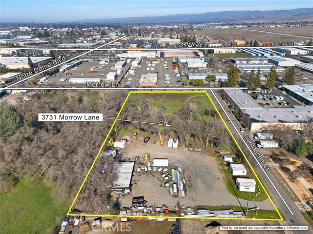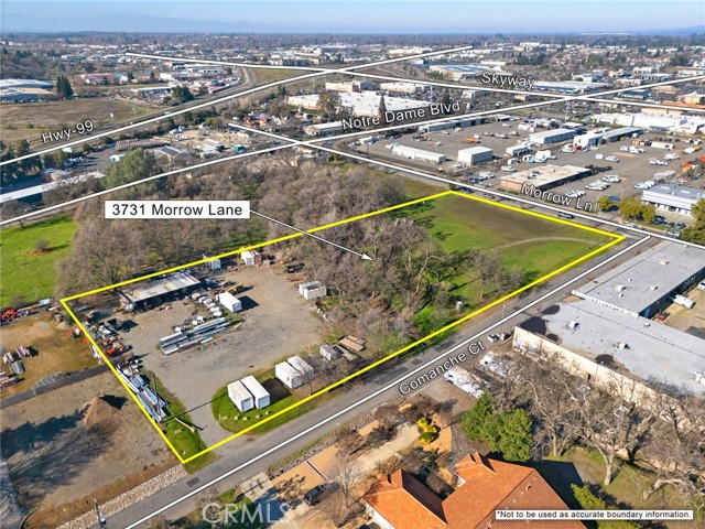A rare opportunity to acquire 3.52 acres of prime commercial-industrial land in one of Chico’s most established trade and contractor hubs. Strategically positioned at the corner of Morrow Lane and Comanche Court, this property sits within the highly desirable commercial district off the Skyway, surrounded by major operators including Home Depot and Payless Building Supply. Zoned ML – Light Manufacturing, the site supports a wide range of commercial, industrial, and service-oriented uses, making it an ideal location for owner-users, developers, or investors seeking to capitalize on Chico’s industrial market. The seller has completed preliminary planning for two proposed buildings: Building A: ~17,753 SF. Building B: ~14,966 SF. Or build out your own plan to suit your needs. See Supplemental Documents for soils report and engineering site plans. The back portion of the property is now being used as a laydown yard storage yard for a construction company.