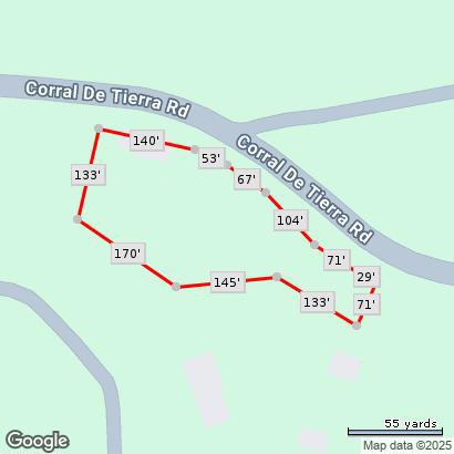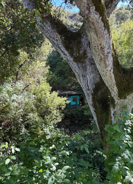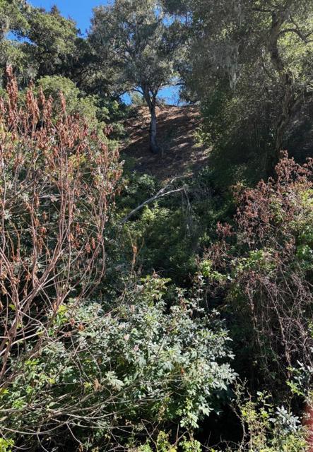 Beautiful, sunny and serene describes this easily buildable 1.27 acre lot along coveted Corral de Tierra. House foundation and garage slab are still standing and look to be in good condition after house burned down in April, 2025. This foundation supported a 3 bedroom, 2 bathroom, 1,324 sq. ft. single-level house with a 20'x26' garage. Small green shed can be seen through the lush trees and thick vegetation on hillside behind. Great opportunity to build the home of your dreams in such a lovely location. Circular dirt driveway in front for ease of parking. Septic, water tank propane tank and well seem to have not been affected by fire. Lot extends approximately 3/4 of the way up the hillside behind and there is a seasonal creek that runs in the gully between the yard and the hillside.