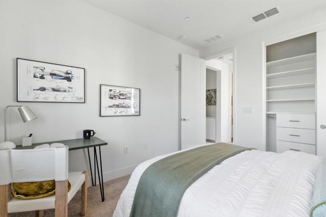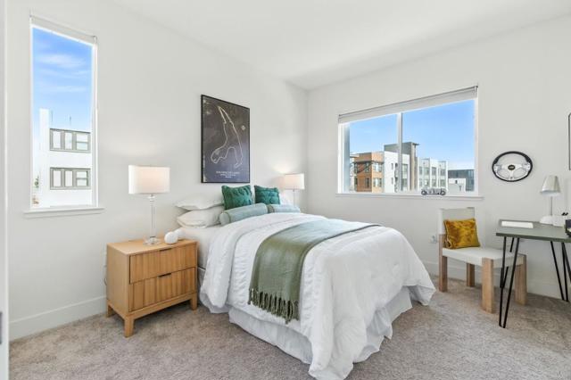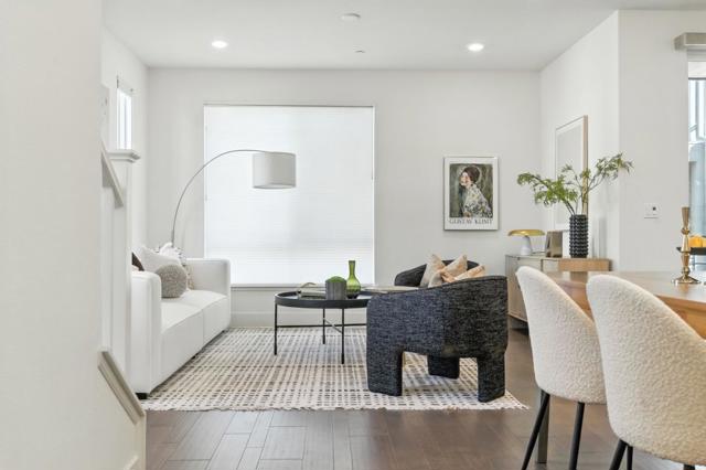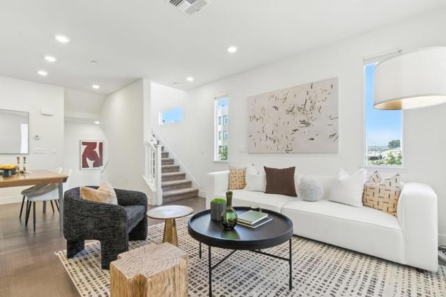 Stunning end-unit townhome in Fremonts sought-after Innovation community! This 2-bed, 2.5-bath home offers a bright open floor plan with high ceilings, recessed lighting, and abundant natural light. Modern kitchen features stone counters, tile backsplash, gas stove, stainless steel appliances, and an oversized island with bar seating. The spacious primary suite includes a walk-in closet and luxurious bathroom. Enjoy central A/C, multi-zone cooling, dual-pane windows with high-end Hunter Douglas window coverings, smart home features, Ring doorbell, in-unit laundry with storage, water softening and reverse osmosis systems, attached 2-car garage with bonus space. Community amenities include pool, gym, BBQ area, clubhouse, and community solar. Prime location - walking distance to Warm Springs BART, Bringhurst Elementary, and easy access to 680/880.