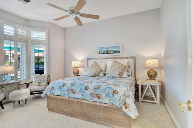 An interior decorators delight! This TURNKEY furnished home is set to welcome the discerning renter. With no detail left undone - from the front courtyard to the back patio, everything is as you would wish it to be. Tasteful furnishings, soothing color palette, upgraded kitchen and appliances- even a piano awaits you! The back patio is set on a courtyard green - no unsightly walls! - Just beautiful green space that is fully maintained. What are you waiting for? This is the one!Sun City Palm Desert is a 55+ Active Adult Community - a true gem of the desert. With two 18-hole golf courses, a multitude of amenities, and over 80 clubs and groups, there truly is something for everyone. Come live the lifestyle you know you want - and deserve.