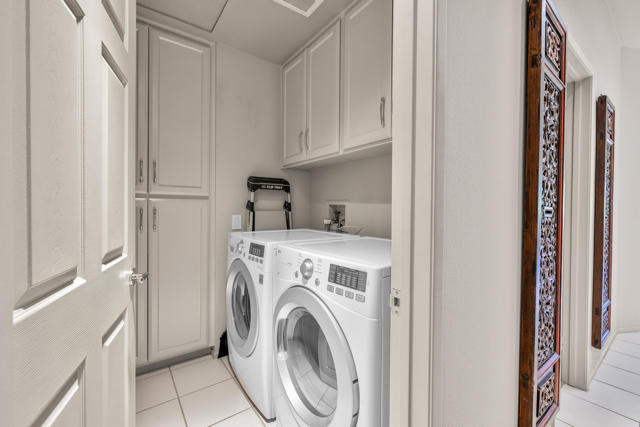 Experience the essence of resort living in this designer chic Tamarisk Plan, ideally situated on one of the best lots in the prestigious Palm Valley Country Club. This single-level, turnkey-furnished residence offers refined indoor-outdoor living with SPECTACULAR panoramic south and west views of the golf course, lake, and majestic mountains. Inside soaring vaulted ceilings and custom designer rich neutral finishes blend comfort with organic elegance. The living room is the heart of the home - featuring a statement textured gas fireplace wall, wet bar, built-in bookshelves and a wall of glass capturing the sweeping golf course, lake and mountain views beyond. The kitchen balances privacy and functionality for a chef to work, while the breakfast bar opens seamlessly to the living area - perfect for entertaining. Retreat to the luxurious primary suite, complete with lighted art niche, vaulted ceiling, large closets and an En-Suite Bathroom with dual vanities, a glass walk-in shower and spa-like soaking tub. Each of the two remaining bedroom suites has its own ensuite bath for ultimate privacy. And there is a stylish powder room for visitors. Enjoy morning coffee in the private front courtyard or dine al fresco on the rear patio overlooking the tranquil lake. Additional upgrades include neutral beveled edge tile floors in the main living areas, lush carpeting in the bedrooms, custom window treatments, recessed lighting, multiple skylights and a newer washer and dryer in the separate laundry room. The two-car detached garage is accessed from the front courtyard. Palm Valley Country Club is SHORT TERM RENTAL friendly and is one of the desert's premier private resort communities with 2 Ted Robinson-designed golf courses, a 100,000 sq. ft. clubhouse with restaurants and bar, fitness center, spa, tennis and pickleball courts, 46 community pools/spas and a vibrant social scene. This home delivers the perfect blend of luxury, leisure, and location.