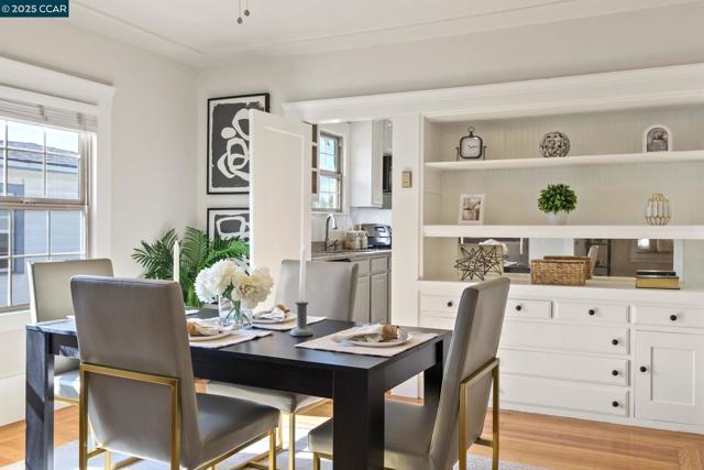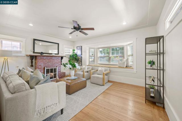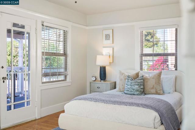 Classic craftsman on top, modern ADU down below - don’t miss this opportunity to own a spectacular home with income potential! The covered porch leads to a custom wood door, opening into the formal dining room with built-in buffet. Natural light pours into the living room through the bay window, centered around a cozy brick fireplace. The spacious eat-in kitchen features a gas range, dishwasher, tile flooring, and a breakfast nook. Two secondary bedrooms share the recently renovated hall bathroom with tub and shower. The primary suite includes a half-bath and access to the covered back deck with west-facing views. The home is packed with original charm, including oak flooring, moulding, and built-ins. Downstairs, a renovated 1bed/1bath unit allows for additional living space or use as a separate ADU. The layout includes an open living/dining room, full kitchen, full bath and bedroom. A bonus finished room offers flexibility as a home gym, office, or storage. The sun-drenched backyard offers spaces for gardening, play, and storage with a level lawn, shed, and fruit trees - yes, those are wine grapes for those looking to make a homegrown vintage!