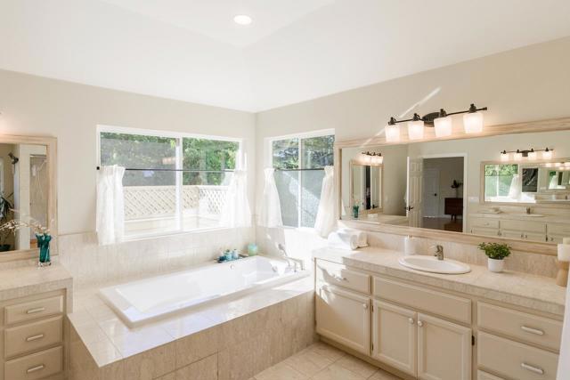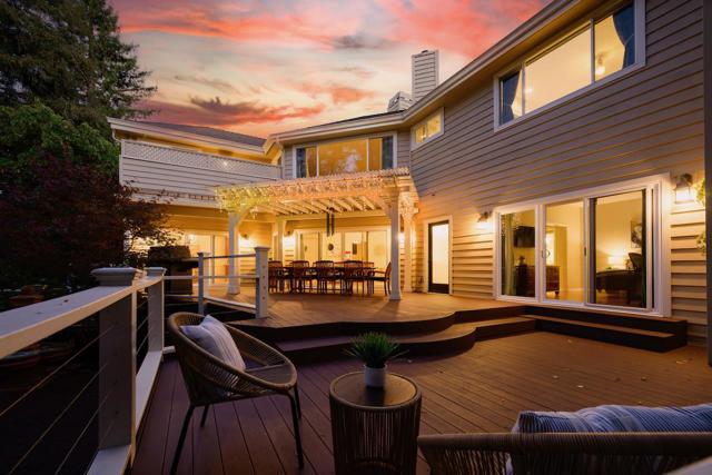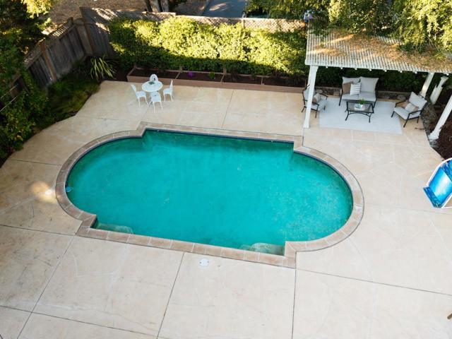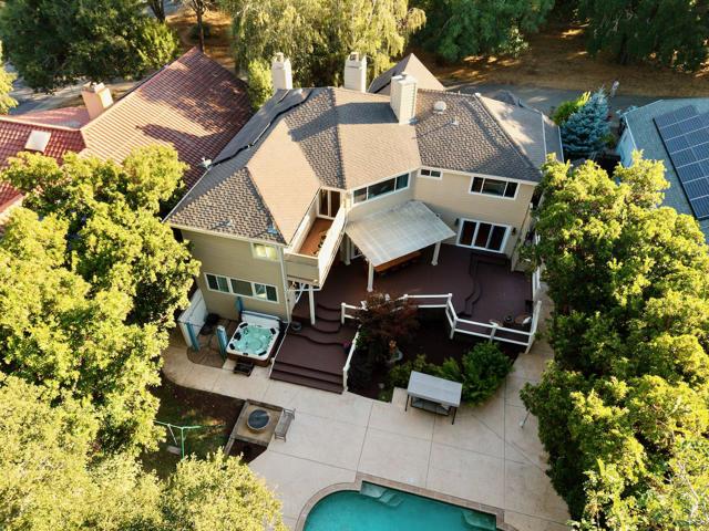 Welcome to this stunning executive residence, situated on a spacious 1/4 acre lot on a quiet cul-de-sac. From the moment you step inside, the grand entry w/ its sweeping staircase and soaring ceilings sets the tone for elegance and comfort. The main level features marble tile & red oak hardwood flooring throughout, formal living room w/ fireplace, & separate family room w/ serene backyard views. The gourmet kitchen w/ high-end appliances, quartz slab countertops, a center island, custom cabinetry, pantry, & informal dining area along w/ a separate formal dining room for entertaining. Downstairs also includes a convenient guest suite w/ private backyard access. Upstairs, the expansive primary suite offers a fireplace, walk-in closet, & luxurious en suite bath w/ oversized tub & separate shower. Two additional bedrooms, a laundry room, and a delightful hidden hobby room (not included in square footage) complete the upper level. The backyard is an entertainers dream, with a large Trex deck, sparkling pool, spa, pergola, lawn, and garden areas plus generous side yards. A spacious 3-car garage & solar power add practicality to this exceptional home. Minutes to Hwy 17 and the beach, plus walking distance to shopping, restaurants, parks and everything Scotts Valley has to offer!