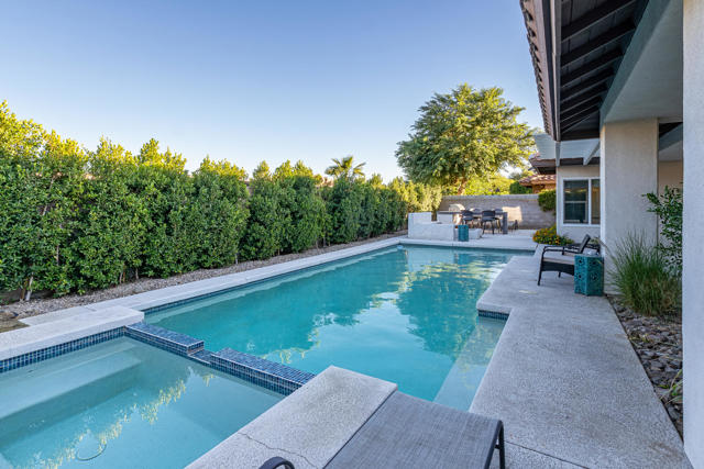 Resort-Style Living in Whitehawk - Fully Furnished Designer Pool Home Located in the sought-after Whitehawk community of Palm Desert, this stunning 3-bedroom, 3-bathroom home offers luxury, comfort, and style on a premium, beautifully upgraded lot. Recently remodeled within the last year, this fully furnished residence is move-in ready--perfect for seasonal, short-term rental, or full-time desert living. Spanning approximately 2,200 sq. ft., the home features all-new tile flooring, fresh interior and exterior paint, custom cabinetry, quartz countertops, and stainless steel appliances. High-end Moen fixtures, custom tile showers, and a sleek freestanding soaking tub in the primary suite add to the designer-level finishes. Brand-new dual A/C units provide optimal climate control and energy efficiency year-round. Enjoy turnkey convenience with brand-new furniture included in the sale--every room has been thoughtfully designed and furnished to reflect modern desert style. Step outside to your private backyard oasis: a true entertainer's paradise with a sparkling pool, built-in BBQ island, and cozy firepit lounge--perfect for relaxing or hosting under the stars. This home combines modern upgrades, new systems, and resort-style amenities in one of Palm Desert's most desirable gated communities. Low HOA dues and proximity to world-class golf, shopping, dining, and schools make this an ideal choice for investors or owner-occupants alike. Whether you're seeking a high-end retreat or an income-producing property, this one has it all.
