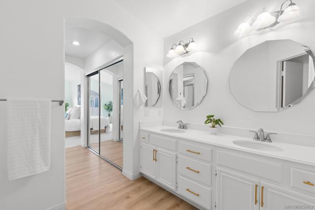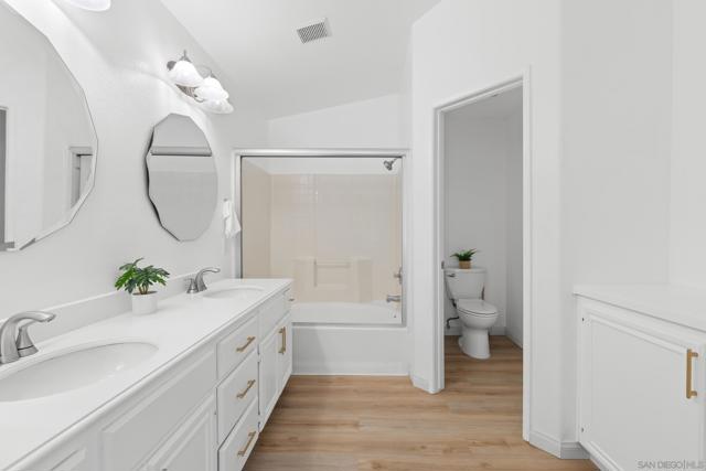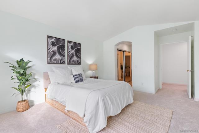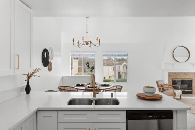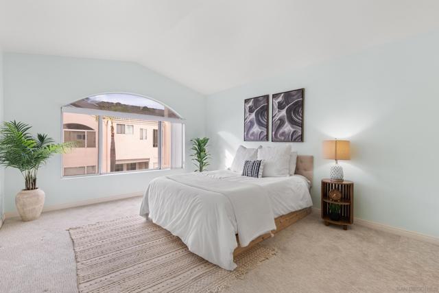 VA APPROVED! Welcome to the highly desirable Sanibelle community—this corner end-unit, upper-level 2-bedroom, 2-bath condo offers the perfect blend of comfort and convenience. Enjoy single-story living with soaring vaulted ceilings and abundant natural light throughout. The home features a functional layout with a tastefully updated kitchen, spacious living and dining areas, and well-sized bedrooms, including a private primary suite. The inviting living room offers a cozy gas fireplace and direct access to a private balcony—perfect for relaxing or enjoying your morning coffee. The home is equipped with central A/C and features extra plush, newly installed carpet. A convenient in-unit laundry closet is located in the hallway. Additional highlights include an attached garage with a newer upgraded garage door installed in 2024, an extra assigned parking space, and two guest parking passes—an incredibly rare combination. Enjoy added value with NO Mello-Roos and a low HOA. Ideally located just minutes from the 805 freeway and within walking distance to Clear View Elementary, shopping, restaurants, and public transportation. Nearby Terra Nova Park offers basketball and tennis courts, playgrounds, and a softball field. Plus, enjoy close proximity to the Gaylord Pacific Resort. Move-in ready and a rare opportunity you don’t want to miss!