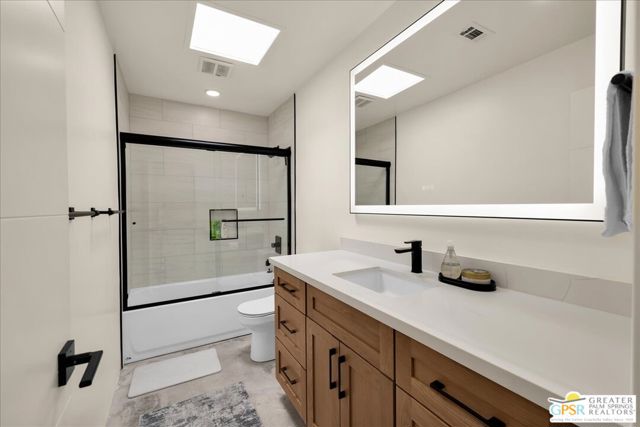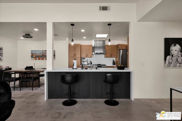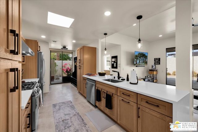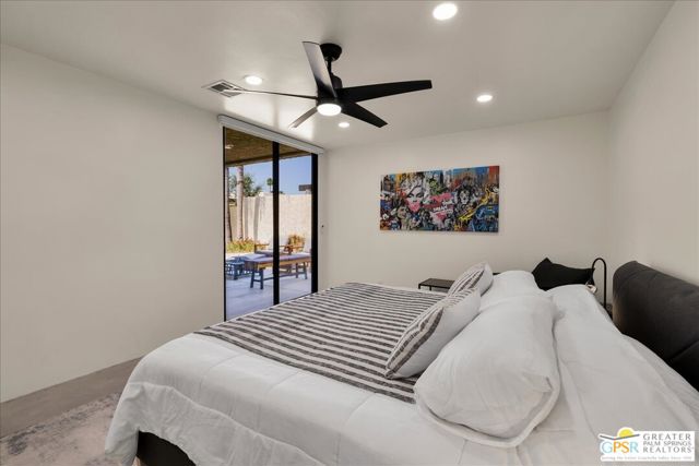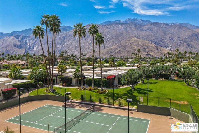 ICONIC MID-CENTURY MODERN LUXURY at GREENHOUSE EAST. 2BD/2BA SINGLE-LEVEL residence on FEE SIMPLE LAND (You OWN the land). Step into ARCHITECTURAL HISTORY in the prestigious MOVIE COLONY / RUTH HARDY PARK corridor. Designed by MAX STARKMAN (protg of RICHARD NEUTRA), this sanctuary is located just blocks from Frank Sinatra's legendary Twin Palms estate. This WELLNESS-FOCUSED home features a LOW-DENSITY layout that maximizes PRIVACY with an intelligent SPLIT FLOOR PLAN, providing excellent separation between the TWO PRIMARY SUITES perfect for a DEDICATED HOME OFFICE or HIGH-END GUEST EXPERIENCE. THE OWNER'S RETREAT offers unique VALUE-ADD EXPANSION POTENTIAL: in addition to the OVERSIZED WALK-IN CLOSET, the primary suite could be further enlarged by integrating the adjacent exterior storage to create a MASSIVE MOUNTAIN-VIEW DEDICATED OFFICE, media lounge, or PRIVATE WELLNESS STUDIO. THE SECOND JUNIOR SUITE is equally impressive, featuring a LUXURY WALK-IN CLOSET plus a secondary closet, providing DUAL-STORAGE SOLUTIONS for MAXIMUM ORGANIZATION.2024 FULL CONTEMPORARY RENOVATION: This 100% TURN-KEY home features an OPEN-CONCEPT CHEF'S KITCHEN with a QUARTZ peninsula, LG STAINLESS STEEL appliances, and a COMMERCIAL-GRADE KUCHT 6-burner stove. Refined interiors include REFINISHED CONCRETE FLOORS, smooth skim-coated walls, and RECESSED LED LIGHTING, creating a sleek gallery atmosphere. SPA-INSPIRED BATHROOMS are reimagined with custom tile and SMART ANTI-FOG BACKLIT VANITIES. SMART HOME READY with remote shades, Ring security, and HIGH-EFFICIENCY HVAC. The OVERSIZED PRIVATE PATIO is a desert rarity, offering a massive OUTDOOR ROOM with PRIVATE SPA POTENTIAL and breathtaking SAN JACINTO MOUNTAIN VIEWS. PREMIER COMMUNITY AMENITIES: Featuring an AQUATIC ANCHOR unlike any other of Palm Springs' largest PROFESSIONAL-LENGTH JUNIOR OLYMPIC LAP POOLS. A true SWIMMER'S PARADISE, this pristine, oversized pool is designed for serious training or tranquil laps, complemented by a bubbling hot tub and sunken tennis courts. Enjoy ELITE WALKABILITY, located less than 1 mile from the VIBRANT DOWNTOWN district featuring CURATED furniture showrooms, CHIC cafes, COVETED art galleries, and STYLISH destination dining like ALICE B and LOLA ROSE. Just steps from the THOMPSON HOTEL, the RUTH HARDY WELLNESS PARK (dog park/tennis/wellness labyrinth), and PICKLEBALL COURTS. HOA COVERS: ROOF, WATER, TRASH, EARTHQUAKE INSURANCE, and gate security. Includes a 1-CAR GARAGE. Own the ultimate PALM SPRINGS LIFESTYLE in this move-in ready MODERNIST masterpiece. FURNITURE AND FURNISHINGS AVAILABLE OUTSIDE ESCROW.