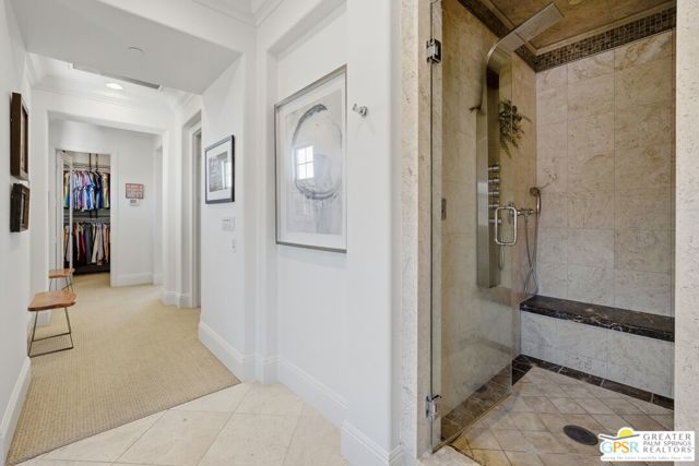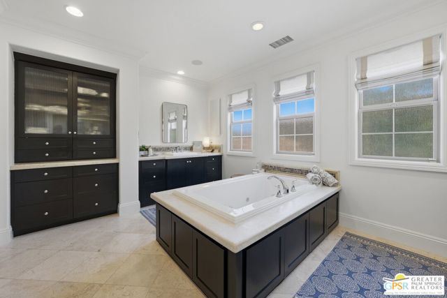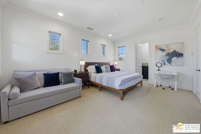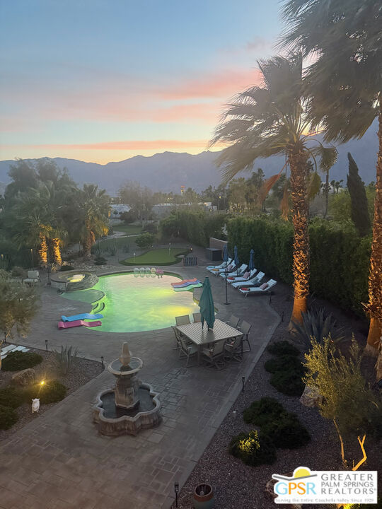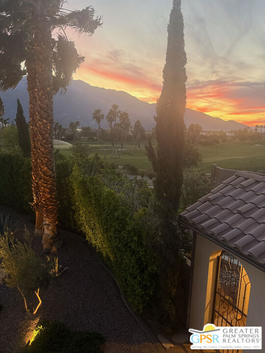 Amazing Escena private residence that fells like your own personal Resort! This 4 bedroom 4 bath gracious home sits on a lg corner lot with golf course and spectacular mountain views. The outdoor entertaining spaces truly reflect the Resort like feel with a beautiful pool and spa, built-in fire pit, outdoor bar-b-que, lounging and dining spaces and your own putting green to sharpen your golf skills! All this with the stunning mountain views surrounding the space. Once inside you will feel the outdoors come into the home that is filled with natural light and almost every room affords the mountain views. Architectural details highlight the home that has been lovingly updated and cared for by the current owners. The home is one of the largest in Escena and the sq footage flows beautifully with comfortable living spaces highlighted by lots of storage, built-ins and designer details that will astound you. An attached Casita with a separate entrance is perfect for guests and the home has paid for solar and lush professional landscaping to enhance this stunning home. Let's not forget that your home sits above the 7th hole of the Nicklaus designed Escena Golf Course, so wake up for a round of golf and come home and live the Palm Springs dream in your own private Resort!
