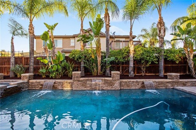 Welcome to 42442 Fiji Way, a beautifully upgraded home located in the highly desirable Crowne Hill community of Temecula. Situated on a quiet cul-de-sac, this spacious residence offers approximately 3,667 sq. ft. with 5 bedrooms, 4 bathrooms, and a loft. Includes a full bedroom and bathroom on the main floor, ideal for guests or multi-generational living. The open floor plan features formal living and dining areas, a large family room with fireplace, and a gourmet kitchen with quartz countertops, double ovens, gas cooktop, center island, white cabinetry, butler’s pantry, and walk-in pantry. Upstairs features a versatile loft perfect for an office, playroom, or media space. The primary suite provides a private retreat with a soaking tub, dual vanities, separate shower, and oversized walk-in closet, Step outside to your backyard, complete with a sparkling pool and spa, built-in BBQ, and custom firepit, that is perfect for entertaining and enjoying Temecula’s year-round sunshine. Located in the sought-after Crowne Hill neighborhood, residents enjoy community parks, walking trails, and top-rated Temecula Valley Unified Schools, including Crowne Hill Elementary. Just minutes to Temecula Wine Country, Old Town, shopping, dining, and Pechanga Resort, this home offers the perfect blend of elegance, comfort, and Southern California wine country living.