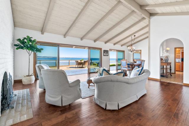 Along the coveted stretch of Opal Cliff Drive, this one-of-a-kind property offers one of the most desirable waterfront locations in Santa Cruz County featuring a large parcel, approximately 127 linear ft of ocean frontage, & sweeping panoramic ocean views. Perfectly positioned between Pleasure Point & Capitola Village, it overlooks world-class surf spots including The Hook, Sharks Cove, & Privates, & is just minutes to beaches, shops, & coastal dining. This custom-built, one-owner home maximizes its oceanside setting with breathtaking views from nearly every room. Set back from the street on almost half an acre, the property welcomes you with a spacious parking courtyard, lush lawn, & inviting entryway. Inside, enjoy vaulted ceilings, cozy fireplaces, & walls of glass that open to an ocean-view deck, seamlessly blending indoor & outdoor living. The main level includes the primary suite, kitchen, living areas, & a den/optional 4th bedroom, offering flexibility for single-level living. Upstairs are two bedrooms, a shared bath, & a deck with coastline views. Originally designed as a three-car garage, it now features a two-car setup with workbench & built-in storage. Recent improvements include a professional soil stabilization system along the cliffside & refreshed landscaping.
