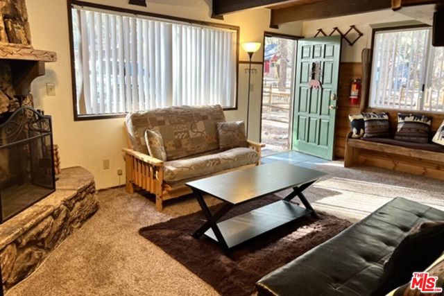 Introducing the best-priced gem of Big Bear Lake! This fantastic 2-bedroom, 1-bath cabin embodies the essence of mountain living while being strategically positioned in the heart of civilization. Near the sought-after Moonridge corridor, it boasts unrivaled convenience, with the area's top attractions just minutes away. Imagine waking up to the crisp mountain air and breathtaking views, knowing that the renowned Big Bear Alpine Zoo, the pristine golf course, and the thrilling ski slopes are all within a short 1-to-3-minute drive. Whether you're a nature enthusiast, an avid golfer, or a ski aficionado, this cabin puts you at the center of it all. Step inside to discover a cozy retreat adorned with rustic charm and modern comforts. The inviting living room beckons with its warm fireplace, creating the perfect ambiance for cozy evenings and memorable gatherings. And for ultimate relaxation, indulge in the luxury of your own private spa, nestled in the serene backyard oasis. Convenience is truly at your doorstep with supermarkets conveniently nearby, ensuring that daily essentials are always within reach. Schedule a showing before it's gone!