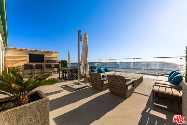 ** FULLY FURNISHED & FULLY EQUIPPED ** Villa Pacifica is an extraordinary oceanfront sanctuary on serene Yerba Buena Beach, where sweeping Pacific views meet refined Mediterranean design. Just minutes from Malibu's private airport, this exceptional villa captures the essence of elevated California coastal living.Behind private gates, an enchanting courtyard welcomes you with ocean views and a barrel sauna creating a true resort-style retreat. Expansive decks overlook the Pacific, including a stunning rooftop terrace with a built-in fireplace, perfect for sunset gatherings. Inside, walls of glass fill the home with natural light, highlighting warm Spanish tones and elegant finishes. The oceanfront primary suite offers breathtaking water views, while guest bedrooms, a private home theater, and a marble-appointed chef's kitchen with a large center island complete the inviting layout. The outdoor space is incredible for entertaining, featuring hot tubs, a large outdoor TV, a full bar, and a retractable awning for seamless indoor-outdoor living. With direct access to a private sandy beach, world-class surf, and Catalina and Channel Islands views, this home truly defines Malibu beachfront living. Meticulously maintained with weekly deck service and monthly window washing, the property is kept in pristine condition inside and out. Come see this gem for yourself you won't be disappointed. Available for short term lease price may vary.