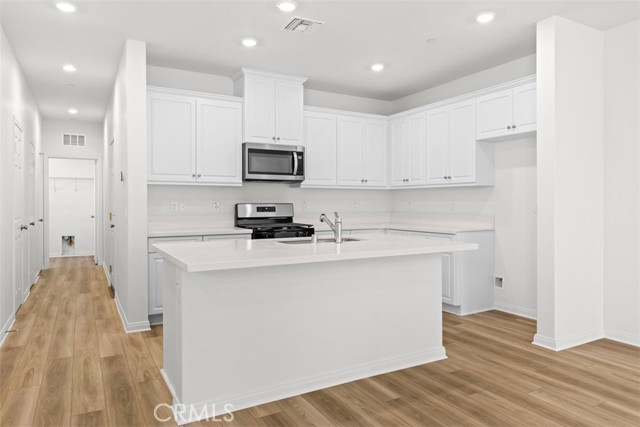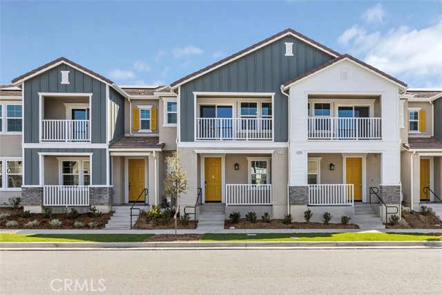 Belmont is a beautiful new condo resort-style community in the newer area of Ontario Ranch. This floor plan offers 2,051 sq/ft of open floor plan spread across 2 floors. Take note of the expansive 9-ft ceilings bringing a nice vaulted feel at the first floor when you walk in. This open floor plan features the living, dining and kitchen downstairs. The stylish kitchen features white raised panel door cabinets, large kitchen island, walk in pantry, dining area, upgraded quartz counter tops and luxury vinyl plank flooring throughout the downstairs. Our homes offer brand-new Whirlpool® stainless steel appliances including a slide in gas stove, dishwasher and microwave. Additionally, the powder room and laundry room are downstairs. The upstairs leads right into an open loft the family can enjoy and two secondary bedrooms nearby. Those two bedrooms share a large hallway bathroom that has a tub/shower combination. The spacious primary bedroom is a short walk away and has a large walk-in closet, adjoining bath with cultured marble counter tops, dual sinks with and walk-in shower. There is also a private balcony from the primary bedroom for you to relax at after a long day at the office. Each home is built with uncompromising energy efficiency in mind such as a tankless water heater, smart thermostat, dual-pane low E glass windows and so much more to help ensure uninterrupted comfort all year long. All that is complemented by a solar energy system as well to maximize savings(lease or purchase required). Community amenities include two parks, pool and spa, dog park, and pickle ball courts. Easy access to the I-15, I-10, and 60 Freeways nearby. You are also close to shopping at Costco®, 99 Ranch Market, Cloverdale Marketplace and Eastvale Gateway. Ontario International Airport and Ontario Mills Mall are also just a short drive away. Belmont is conveniently located just 2.5 miles away from the brand new Park View elementary school. Photo is a rendering of the model. can purchase or lease the solar!