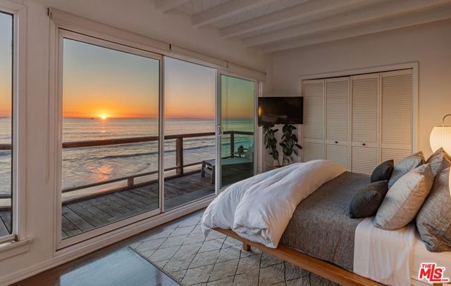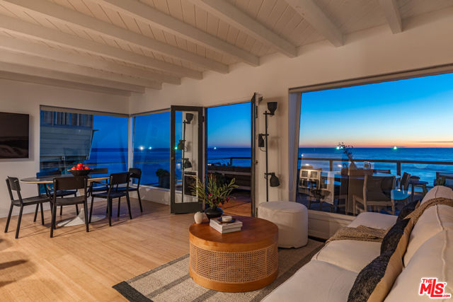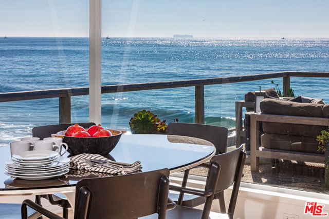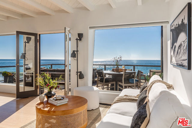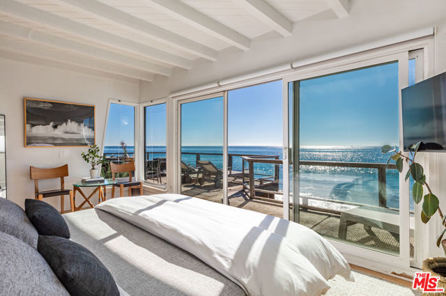 Malibu coastal lifestyle with nearly 70 feet of sandy shoreline. This 3-bedroom, 2-bath home sits directly on the sand offering true oceanfront living with direct access to the water. The primary suite opens to an expansive beachfront deck creating seamless indoor-outdoor flow and panoramic ocean views. Two guest bedrooms complete the interior, each designed for comfort and privacy. The deck provides generous space for dining, lounging, and entertaining with sweeping views from Catalina to the Channel Islands. Private stairs descend to the beach for effortless access to the ocean perfect for paddle boarding, kayaking, boogie boarding, snorkeling, or more adventurous pursuits such as surfing, kite surfing, spearfishing, and open-water boating. A beach-level hot-water shower adds comfort after time in the waves. Dolphins, sea lions, and seabirds are frequent sights, with migrating whales visible offshore during the season. The location combines the privacy of direct beachfront living with proximity to Malibu's best amenities. Scenic trails wind through the nearby Santa Monica Mountains. Neptune's Net a longtime local favorite offering fresh seafood and ocean views is a short stroll away, while Trancas Country Market and Point Dume offer additional dining and boutique shopping just minutes up the coast. Experience Malibu beachfront living at its best where the sand is your backyard and every sunset is unforgettable.