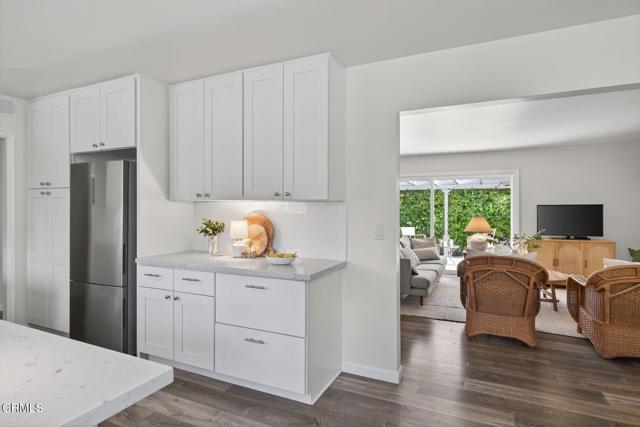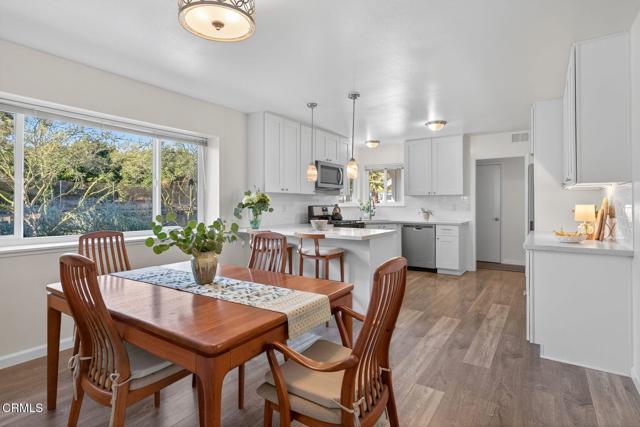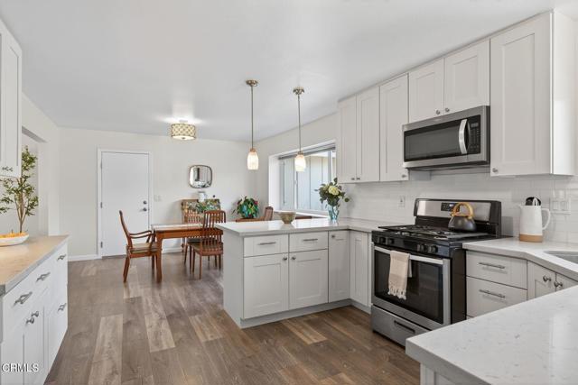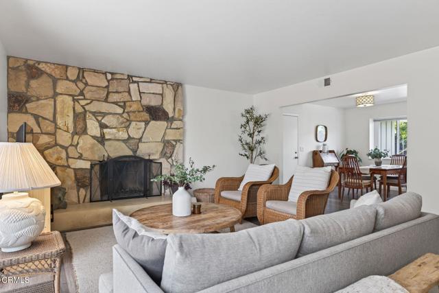 Set on a prime corner lot in the peaceful foothills of Santa Paula, directly across from a picturesque avocado orchard, this immaculate and highly upgraded single-story home is a true gem. Framed by a charming exterior, drought-tolerant landscaping, and a stunning mountain backdrop, the residence welcomes you inside with warm wide-plank flooring, soothing neutral tones, and elevated finishes throughout. The beautifully remodeled kitchen captures serene views of the orchard and features timeless quartz countertops, soft-close cabinetry, stainless steel appliances, and a spacious counter bar perfect for casual dining. Designed for connection and gathering with loved ones, the kitchen opens to a bright dining area that flows into the expansive living room- centered by a classic stone fireplace and illuminated by warm natural light. Large glass sliders invite you outdoors to the private patio and backyard--an ideal setting for family barbecues, al fresco dining, or quiet evenings spent enjoying Santa Paula's ideal climate. Down the hallway, you'll find three bedrooms with mountain views, a full guest bath, and a serene primary suite offering a generous walk-in closet and brand-new (2025) ensuite bath. Every detail has been refreshed, from the tiled walk-in shower and new vanity, to contemporary flooring and fixtures. Additional highlights include an attached two-car garage, RV parking, plumbed exterior drainage, and underground utilities. Perfectly located near charming downtown Santa Paula, local trails, parks, shopping, and with easy 101 access, this home offers the best of relaxed living and modern convenience. Don't miss the opportunity to make this exceptional home your own.