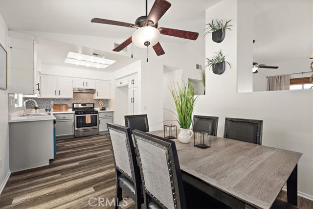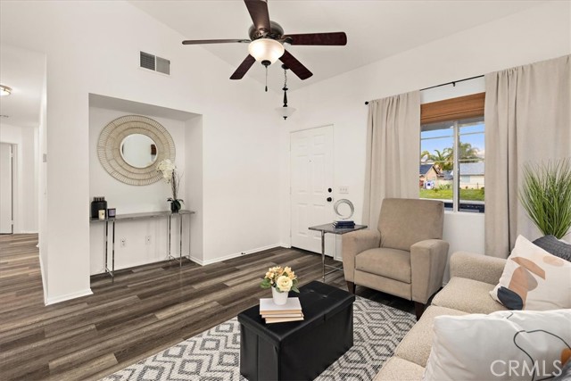 Welcome to 42859 Masonic Drive, a beautiful single story home located on the desirable east side of Hemet. Built in 1995, this charming residence offers three bedrooms, two full bathrooms, and approximately 1,133 square feet of living space on a generous 7,405 square foot lot. The open concept floor plan creates a seamless flow between the dining area, and kitchen, perfect for entertaining or relaxing with family. The home features durable vinyl flooring throughout, along with central air conditioning and heating for year round comfort. Nestled within a well established neighborhood, this property provides both comfort and convenience with close proximity to local amenities. Residents can enjoy outdoor recreation at nearby Diamond Valley Lake, explore local history at the Western Science Center, catch live performances at the Ramona Bowl Amphitheatre. With its inviting layout, recent updates, and prime location near schools, parks, and dining, this home is move in ready families, or anyone looking to enjoy the peaceful East Hemet lifestyle.