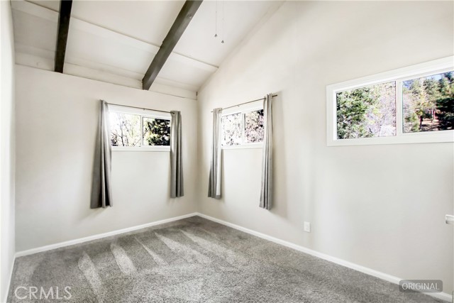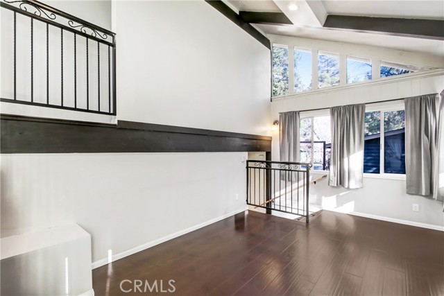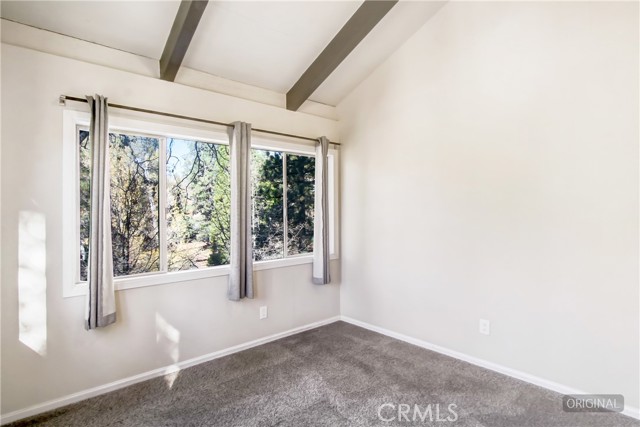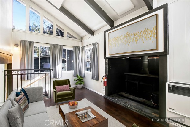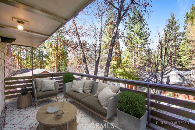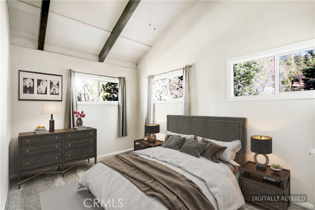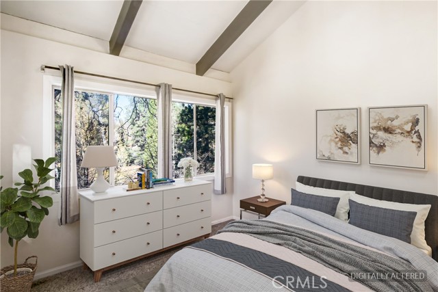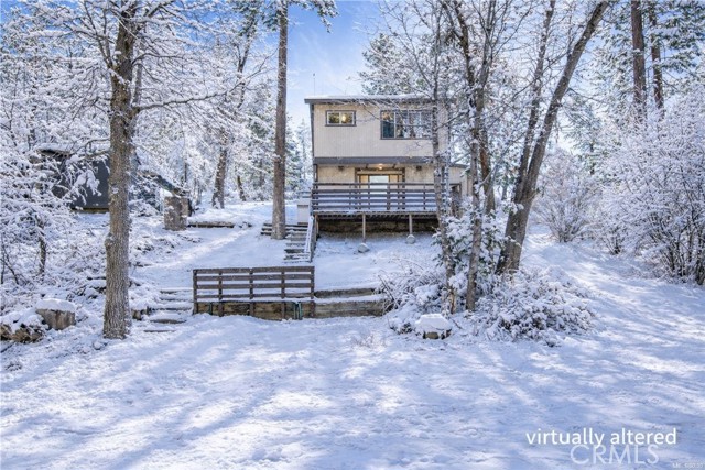 Cozy Big Bear home on a Large Lot! Welcome to this charming 2 bed, 1 bath mountain retreat offering 789 sq ft of living space on a spacious 12,051 sq ft lot. Featuring vaulted ceilings, exposed beams, a cozy fireplace, and an updated kitchen with stainless appliances, this home is perfect as a full-time residence, weekend getaway, or short-term rental. Enjoy the peaceful setting from the covered deck surrounded by pine trees, with plenty of room for outdoor entertaining, parking, and future expansion. Conveniently located near Big Bear Lake, ski resorts, hiking trails, and the Village. A great opportunity to own in Big Bear! Some images in this listing have been digitally altered.