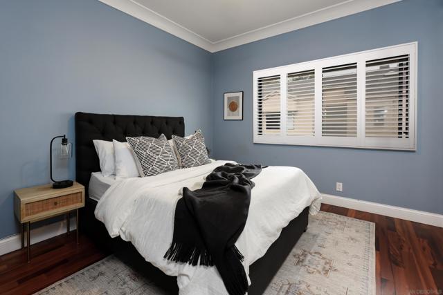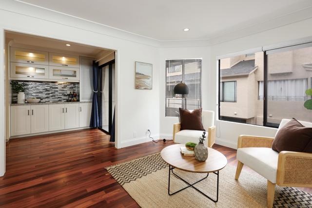 Beautifully maintained 2-bedroom plus den, 2.5-bath townhome with an attached 2-car garage, located just minutes from UTC’s shopping, dining, and recreation. Turnkey and move-in ready, this home is situated in the sought-after University Towne Square community. The bright, open floor plan features a custom kitchen with designer cabinetry, granite countertops, an upgraded backsplash, and bathrooms with quality fixtures. The home includes vaulted ceilings, a primary suite with dual vanities, a separate soaking tub and shower, a private patio, and two balconies. Additional highlights include central air and heat, hardwood flooring throughout, crown molding, recessed lighting, and a cozy fireplace. A separate laundry area provides added convenience and extra storage.