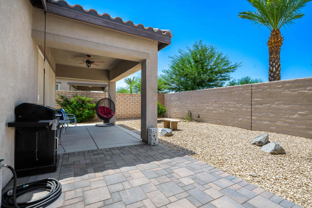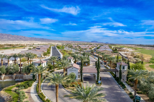 Welcome to 43553 Treviso Drive at Four Seasons Terra Lago -- Award-Winning Resort-Style Living!This beautifully upgraded home blends comfort, efficiency, and style with all the perks in Indio's premier 55+ guard-gated community.Inside, the open-concept floor plan offers 2 spacious bedrooms, 2 bathrooms, and a versatile den ideal for a home office or guest retreat. A 2-car garage plus dedicated golf cart bay provides ample storage. The home has been enhanced with brand-new designer tile flooring, soaring ceilings, recessed lighting, and custom window treatments. The chef's kitchen is a true highlight, featuring granite countertops, white cabinetry with updated pulls, stainless steel appliances, a stool-height island with pendant lighting, and seamless flow into the dining and great room with direct patio access.The primary suite boasts abundant natural light, a walk-in closet, and a spa-like bath with dual vanities, a glass-enclosed shower, and refreshed fixtures. Additional upgrades include a finished laundry room with cabinets and utility sink, washer/dryer, and a tankless water heater. Outdoors, enjoy a covered patio extended with elegant pavers--perfect for entertaining or relaxing--with room to add a spa or water feature.At Four Seasons Terra Lago, resort-style amenities await. The 22,000 sq ft lodge features a state-of-the-art fitness center, full-service salon, yoga and aerobics studios, library, billiard room, ballroom, bistro, and both indoor and outdoor pools. Residents also enjoy tennis, pickleball, golf, and countless organized activities. Beyond the gates, you're just minutes from Acrisure Arena, world-class casinos, hiking, dining, and shopping, with easy freeway access to La Quinta, Palm Desert, and Palm Springs.Experience the ultimate in desert living with this rare opportunity--schedule your private tour today!