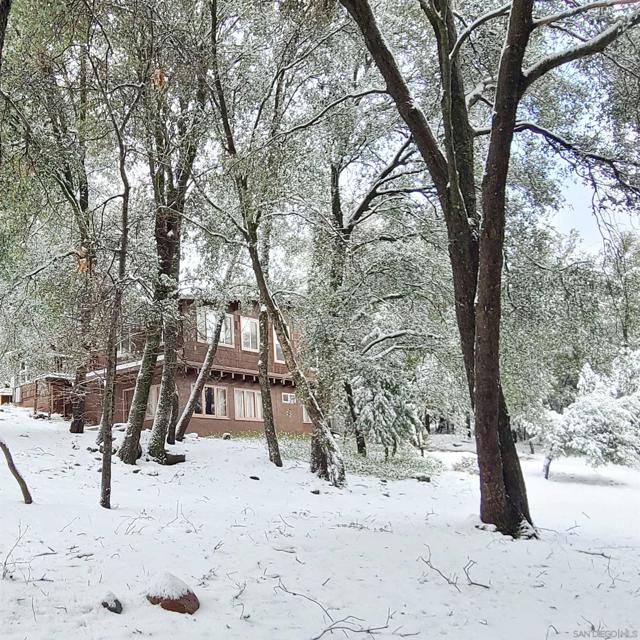 Welcome to peaceful forest PRIVACY! Bring your farmhouse mountain retreat dreams to this highly desirable Pine Hills neighborhood, nestled in the middle of a 1.74 acre property hidden from the road. Minutes from historic Julian and Wynola shops, restaurants, wineries and schools. Multiple parks nearby, offering outdoor hiking and fishing options. This home is perfect to move right in and build equity in finishes to suit your taste. Though the home is in need of some cosmetic updates, customize it to your own style while increasing the value. A perfect opportunity for those looking to add personal touches or invest in a versatile property with long term potential. The interior has bright open living room space with a cast iron wood burning stove and hardwood floors. Vaulted beamed ceilings on both levels. Three bedrooms plus two bonus rooms perfect for home office, gym, artist studio or additional room conversions. The downstairs bedroom is large enough for a king size bed as well as sofa/sitting area. Outside property includes two Tough Sheds for additional storage of toys, tools and equipment, circular driveway, multiple areas for parking, and a full home automatic generator with separate dedicated propane tank. Property features include an old oak and cedar forest setting to experience all four seasons. Lots of shaded outdoor space perfect for entertaining and daily sightings of wildlife. If you are looking for a relaxing retirement home, an occasional mountain retreat or an investment income this home is brimming with endless potential to reflect your own style. Experience all four seasons including beautiful mountain summers, colorful fall leaves, occasional snowy winters and lush green springtime. Seasonal lilacs, blackberries, daffodils and floral vinca adorn the natural landscape. Daily sightings of a variety of wildlife include deer, turkey and the amazing red tail hawk. The gentle sloping property invites you to bring your gardening plans, chickens, bees and farm animals including horses. Lots of quality oak split wood is available for your efficient wood burning stove.