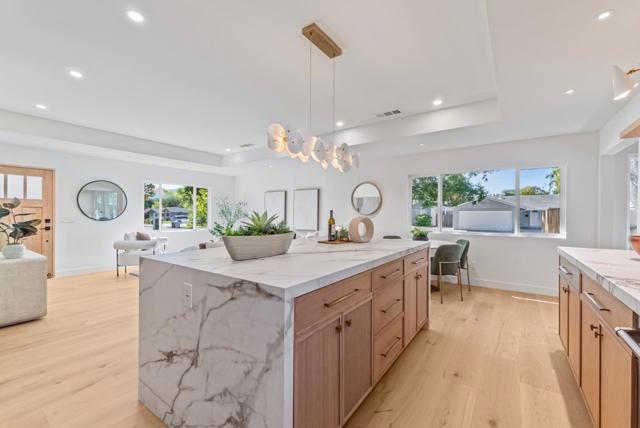 Quiet large lot, 2 master suites + 2 walk-in closets, 4 bedrooms + den (total 5 rooms). Just 9-minute walk to the Harker school. Fully remodeled from top to bottom for modern comfort and style. Open floor plan features soaring ceilings, recessed lighting, and abundance of natural light. Chef's kitchen showcases new stainless steel appliances, modern cabinetry, porcelanosa porcelain slabs countertops, and oversized island. Two primary suites, each with a walk-in closet, ideal for multi-generational living or guests. Extensive upgrades include new roof, A/C, windows, insulation, and more. Conveniently located near top employers such as Apple, Netflix, Google, and Meta, and close to Downtown Saratoga, Westgate Mall, Santana Row, highly rated schools, libraries, and community centers.