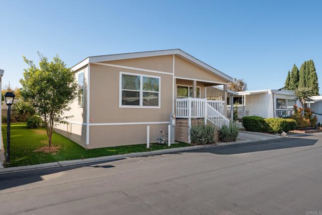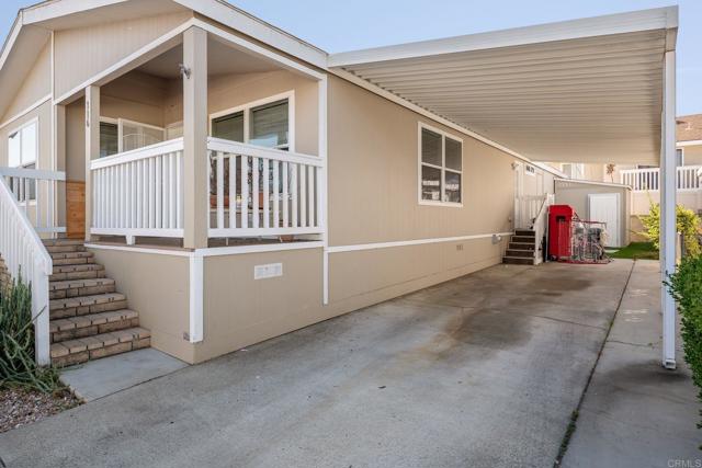 This beautiful 4 bedroom / 2 bathroom Manufactured home was built in 2011 and is located in a gated community in Oceanside. This home is placed in an all-age community. Large kitchen with a center island and stainless-steel appliances. The kitchen has plenty of room to share the cooking with the rest of the family. Great open floor plan with a cozy fireplace, that gives everyone plenty of room and living area. Kitchen nook closely connected to kitchen and living room. This home is equipped with Solar for energy efficiency. Spacious front deck to sit out and entertain with family and friends. Oversized driveway with covered parking and storage shed. Offering low space rent. This community is offering gated entry, pool, spa, sports court and large clubhouse. This is a great opportunity to live in Oceanside and be close to shopping, restaurants and transportation.