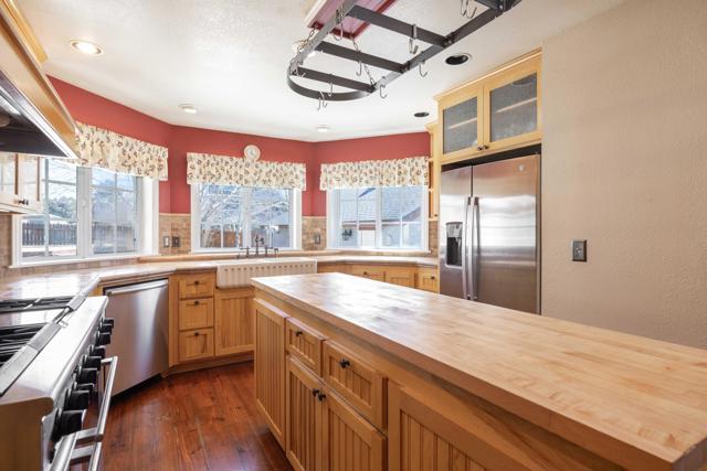Welcome to this gorgeous Estate on over an acre of beautifully landscaped grounds, making it a park-like setting. Spectacular mountain and sunrise/sunset views. The property is fully fenced with rolling gates and is zoned for Equestrian use, plenty of room to add a barn, corral, etc. This home boasts a fully equipped farm kitchen with large pantry and dining area, warm wood floors, a huge primary suite on the main level with a fireplace, living room with a fireplace, den/family room, 2nd level on-suite, additional bedrooms/bathrooms, separate laundry room, loft area with a wood burning stove, and an additional 3rd level loft/storage room. The main floor also has a lovely and relaxing atrium/sunroom, and you can also enjoy a nice soak in the exterior spa. Lots of parking and storage with the expansive driveway, 3 car garage, and shed. The roof is newer, March 2023. Complete with an in-ground well, and a whole-house generator with a separate (owned) propane tank, to make sure you will always have power during those periodic outages. What a great ranch/estate, come take a look!!!