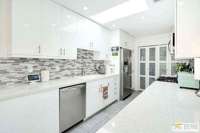 Unparalleled outdoor space adds square footage to this beautiful home. Welcome to Greenhouse West, a lush gated community within minutes of downtown Palm Springs. A Country Club vibe with two sparkling pools, spa, gazebo, tennis/pickleball court and surrounded by beautiful manicured landscapes and spectacular mountain views. Enter your expanded and walled courtyard and entertain friends or enjoy relaxing in your private spa and chilling by the cozy fire-pit all while gazing at incredible sunset views of San Jacinto Peak. Professionally landscaped, automatic drip system and warm up lighting make this the perfect outdoor room. If that's not enough, every interior room has been beautifully remodeled and all systems updated. Gallery stainless appliances; wine frig; quartz waterfall peninsula; Porcellanato Italian tile; Ove, Koehler and Moen bathroom fixtures; Hinkley lighting; Carrier HVAC. Available furnished or unfurnished. PLEASE NOTE seller has their replacement home under escrow which is why they have done a major reduction in price. THIS IS A DEAL FOR A SAVVY BUYER!