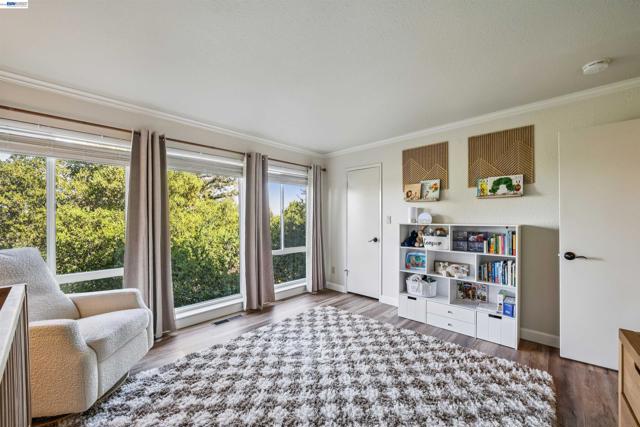 Enjoy your own private retreat with sweeping views of Mt. Diablo from this rarely available end-unit townhome. Floor-to-ceiling windows and dramatic wood-beam ceilings fill the open floor plan with natural light, while skylights and refinished hardwood floors add warmth and character throughout. The beautifully expanded kitchen features stainless steel appliances, granite countertops, a breakfast bar, and direct access to the upper patio - perfect for entertaining or relaxing while taking in the scenic backdrop. Two generously sized bedrooms offer walk-in closets, including a serene primary suite with an updated bath and a private deck ideal for peaceful mornings or unwinding in the evening. A versatile third bedroom provides flexible space for a home office, playroom, or guest retreat and includes finished attic storage. The Ridgeview community offers desirable amenities, including a swimming pool, clubhouse, tennis courts, and RV parking. Ideally located near miles of trails and parks, with convenient commuter access and just minutes from Paso Nogal Park and the shopping, dining, and entertainment of downtown Pleasant Hill.