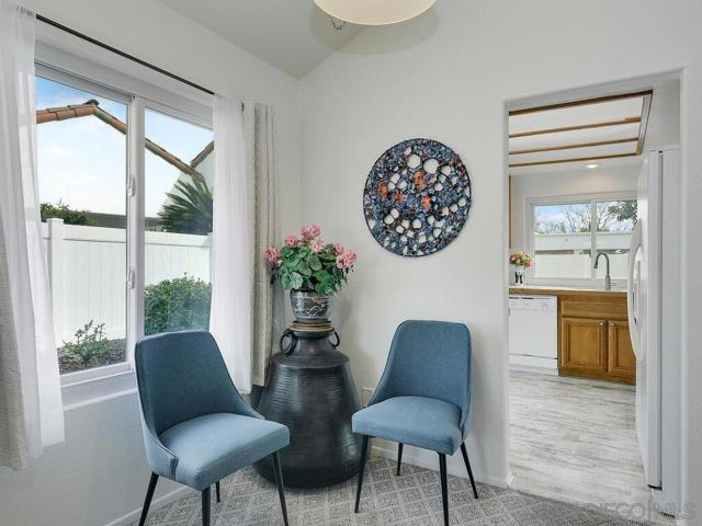 Welcome home to Ocean Hills Country Club, an active 55+ community with resort style living and amazing amenities. Escape the cold winters and enjoy the year-round mild climate. This rare Delphi 1 model is ready to make it your own, whether as your primary or as a second home. Enjoy 921 square feet, a spacious primary bedroom with ensuite bathroom, and a second bedroom plus a powder room. Features include Andersen retrofitted dual pane, dual function windows and 2 retrofitted sliding glass doors. Vaulted ceilings create a feeling of a much larger space. The efficient kitchen and airy living room both open up to side patios, professional hardscape, and low maintenance landscaping. The artificial turf lawn could easily be a putting green. There is also an oversized one car garage with direct access to this home. Laundry facilities are located inside for convenience. Don't forget to tour the Clubhouse amenities and take note that there is a no fees executive golf course, free RV onsite lot, 8 pickleball courts, 3 tennis courts, plus more than 40 social clubs, groups and so much more. Ocean Hills Country Club is the premier, gate guarded 55+ active living community in south Oceanside, California. This community offers something for everyone! The 27000 sqft clubhouse hosts, dances, concerts, and constant year-round events. In fact, if your interest group is not represented, then you can start a group. Right now, there are about 40 clubs and groups ranging from golf, pickleball, tennis, bocce, RV, pool, billiards, sewing, crafts, cardmaking, oil and watercolor painting, photography, genealogy, fitness, mahjong, bridge, line dance, ballroom, a few dance clubs, several wine clubs, wood working, hiking, and yoga, just to name a few! You will love Ocean Hills. OH...This is a pet friendly community too.