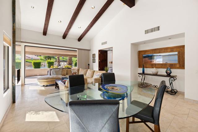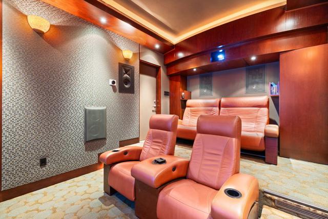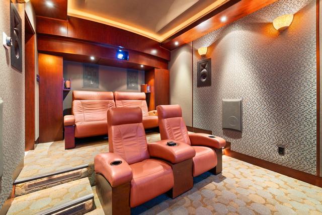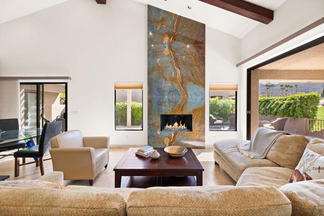 Major remodel. Taken to the studs and strapped to the slab foundation. New electrical. Ceilings raised to 10 feet from the typical 8 ft. Fireplace raised and exquisite DaVinci marble slabs placed with matching details. Expanded to the property line with only the top quality materials and workmanship. No expense spared. One of the largest freestanding Skyview home and unlike any other. With so many unique features, it is hard to know how to list them all. The view across the golf course toward the mountains to the South are captivating. To enhance the view, the Western glass sliders across the rear of the great room disappear completely into the wall. The home offers additional privacy due to the generous greenbelt on the right side. The nearby community pool is conveniently there. The Paradise Theater brand cinema room is an enclosed room with a 4 K laser projection system, leather seats from Belgium, 5 layers of sound insulation, lead lined walls, custom designed HVAC system to minimize the noise. engineered for an amazing experience equal the best commercial theaters for unmatched acoustics and visual images on a large 120 inch screen. It will transform your enjoyment of watching movies, sports and news. Like being the the theater, but your own private theater! The expanded kitchen and eating area offers a superior dining experience. The kitchen is thoughtfully designed with a 6 burner gas cooktop and oven, a stainless hood, granite countertops and stainless steel sink. And a SubZero refrigerator, of course. All integrated into an open floor plan. Additional square footage was added to gain access to the garage directly from inside the home, to expand the informal eating area, to add the theater room and to expand the primary bath and primary bedroom, now 25 ft. long. It now feels and is luxuriously large. Custom shower and cabinetry. The 3rd bedroom has it's own bathroom. It is currently used as an office. You will sense that no expense was spare. The massive paver stone and tile patio wraps around and has the unique feature of being one of the very few that is enclosed. There you will find a pergola, a gas firepit and gas built-in BBQ. A pet-friendly yard is a very rare find. Association VII consists of 86 homes, all freestanding and the dues include EARTHQUAKE INSURANCE.