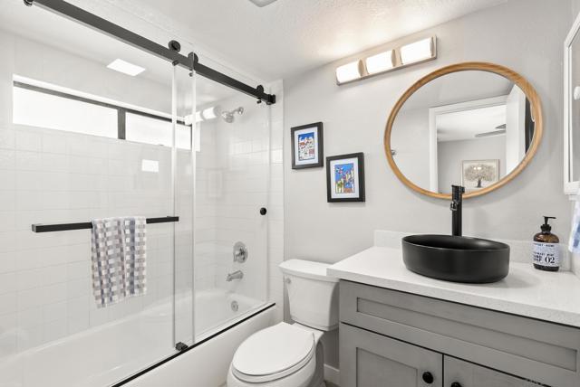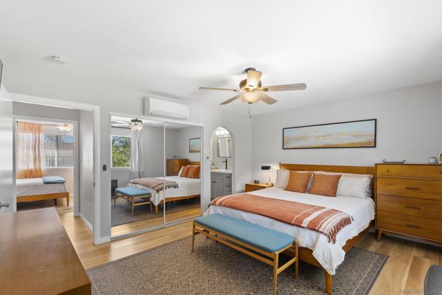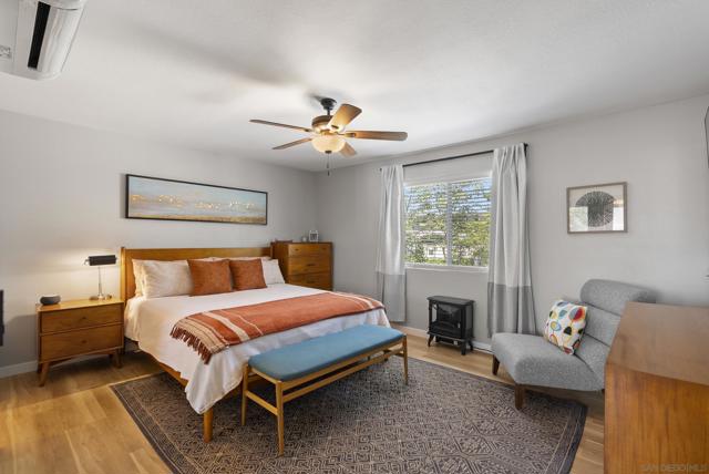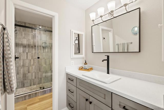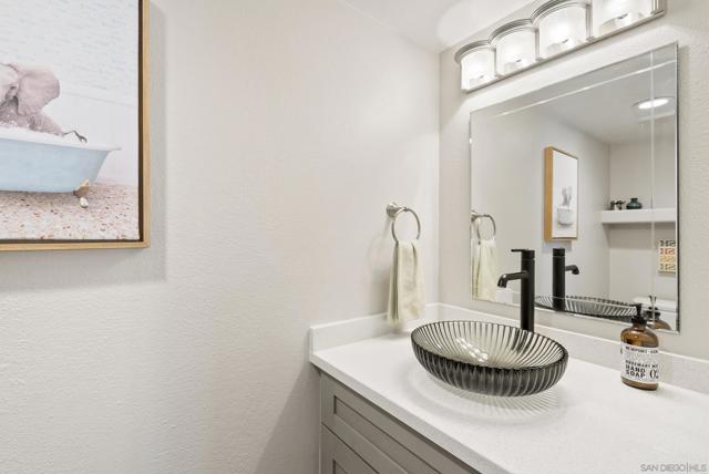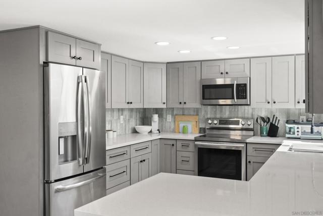Move-in ready remodeled townhome in La Mesa with 2-car garage, additional parking, and a large private patio. Inside, the home features luxury vinyl flooring, solid wood kitchen cabinetry, quartz countertops, stainless-steel appliances, and beautifully renovated bathrooms with custom glass shower enclosures. Major improvements include updated plumbing, a new water heater, energy-efficient mini-split heating and cooling systems, double-pane windows, ensuite bathrooms in both bedrooms, generous storage, recessed lighting, and convenient access from the garage to the private outdoor space. This upgraded townhouse-style residence is located within a gated community with low HOA dues, offering both privacy and convenience.