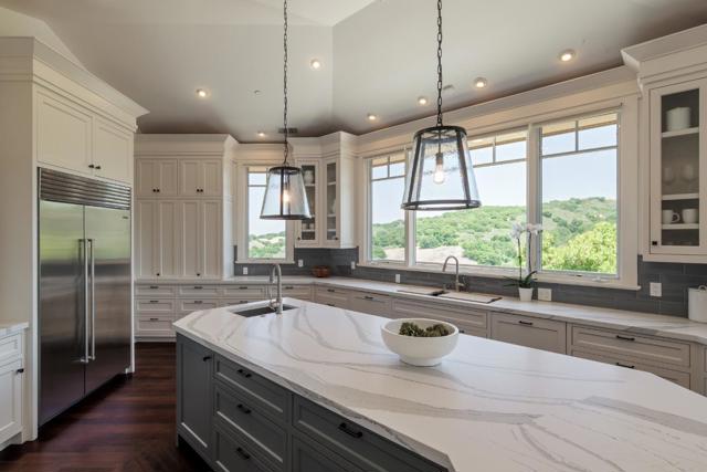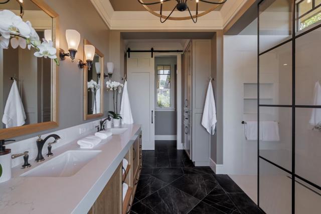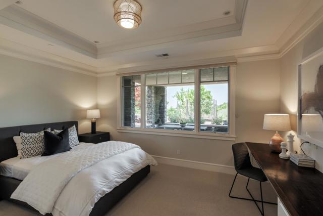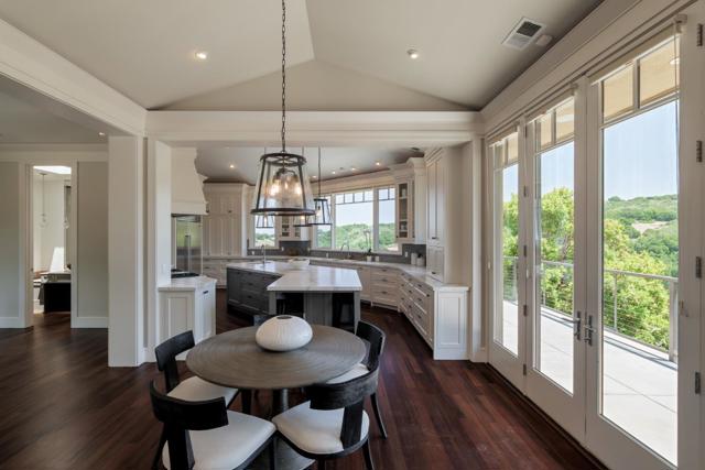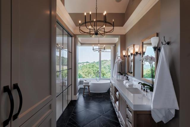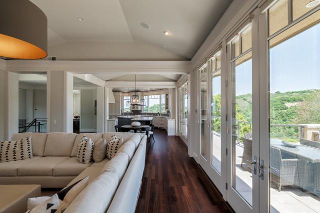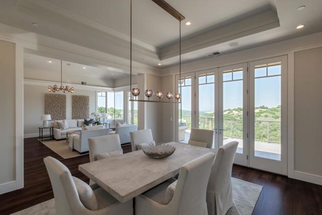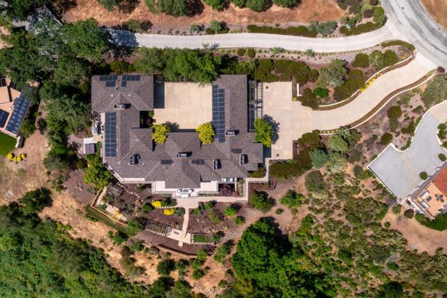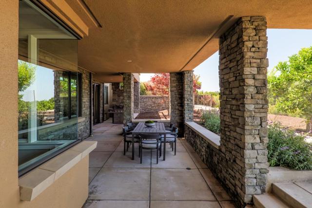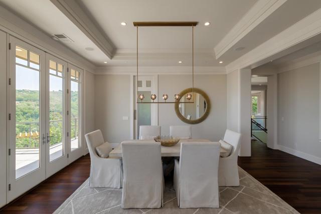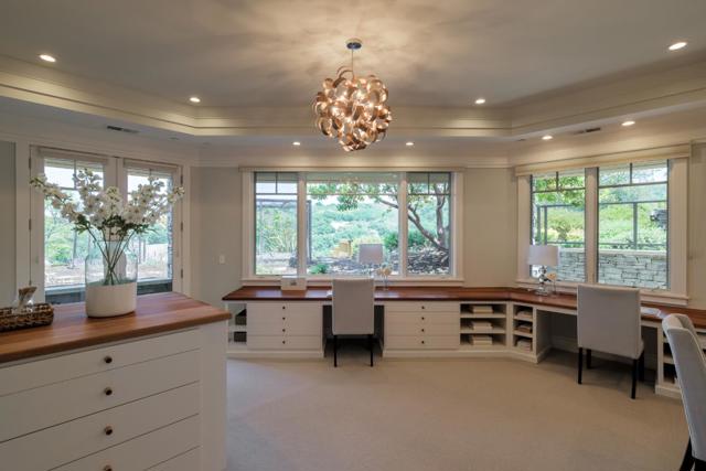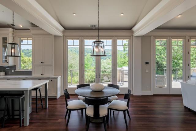 Prominently perched on the Portola Valley hillside, this contemporary home has been upgraded with the finest materials and craftsmanship providing glorious panoramic views of rolling hills with Silicon Valley and the Bay in the distance. This home is elegant, sophisticated and secluded and just a short drive to Silicon Valley with easy freeway access. The flexible floor plan includes six bedroom suites, dedicated office/den with fireplace, living room with soaring ceilings, fireplace, adjacent balcony and forever views, great room with access to the outdoor kitchen and spa plus a gathering spot and an in-home theater on the lower level. The kitchen is appointed with high-end appliances, butlers pantry, island and breakfast bar, all open to the casual dining/family room--perfect for intimate gatherings and sufficient for hosting formal dinner parties or large events. The garden boasts wrap around balconies and patios, views, beautiful plantings in front and sunny, enclosed fruit/vegetable beds below. Solar power system with robust Tesla battery support, 5 zone heat & A/C, full property security system, two laundry facilities, two two-car garages and community pool/spa complete this move-in ready home. Top rated Portola Valley schools. Close by hiking/biking/equestrian trails.