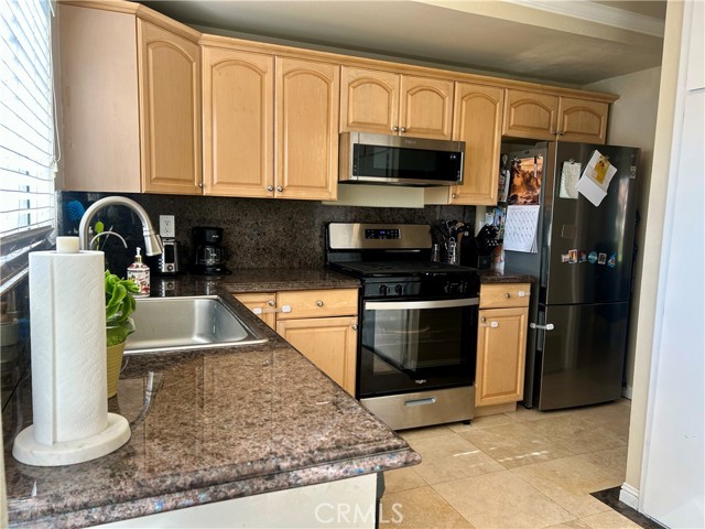 This beautiful 2 story townhouse in Riverside features three bedrooms (all upstairs) and two and a half bathrooms. You'll enter into a large living room with pretty travertine tile flooring and crown molding. The sunny kitchen has ample countertop space, plus room for a dining table. You'll appreciate the updated downstairs powder room for guests, and the convenient inside laundry, too. The upstairs has updated wood flooring. The primary bedroom features a private, updated bath with tiled shower. The hall bath is also updated and has a tub/shower combination. There is a detached two car garage and private back yard. The HOA fee includes water, trash, exterior building insurance, and front yard and common area landscaping. Centrally located in Riverside, close to Riverside Plaza, Trader Joes, Cal Baptist University, UCR. Medical services, and downtown Riverside! This well kept community has walking paths, grass, trees and is highly sought after. This would be a perfect first home, rental, or 1031 exchange. Homes in this community rarely come on the market, plan your visit today!