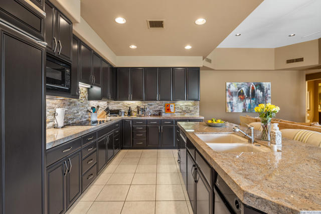 La Quinta Escape is a four bedroom, five bath, just under 4000 sq/ft complete mountain-view home in the prestigious, elegant Painted Cove Community, La Quinta, CA. Golf at 25 world class golf courses. Enjoy mountain hiking and fine dining. Each room has stunning, spectacular, unique original art from all over the world. The living room has a panoramic view of the Santa Ana Mountains. The four spacious bedrooms (each with its own bathroom) provide elegance. The grand master and second bedroom suites have stunning mountain views. An inviting fireplace; private garage; 4 TVS; BBQ; and office-are all for the upper bracket traveler. The gourmet kitchen provides an unmatched culinary experience. The FOUR eating areas have stunning mountain and pool views. Bike to charming Old La Quinta! Eat at 5 star restaurants! Book now!! ($6,900 June thru October), No Pets