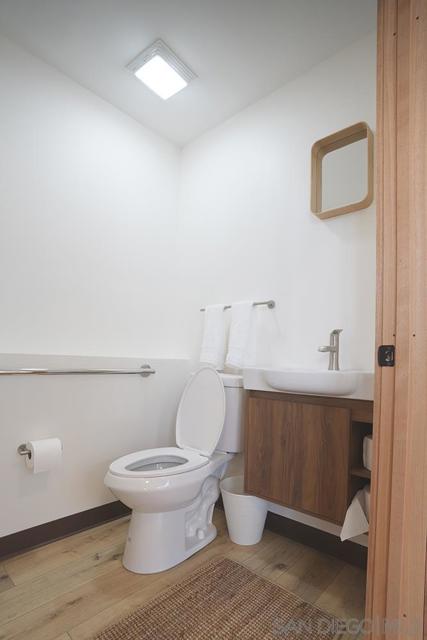 Variance granted condominium. Come savor the breezes of Oceanside's coastal lifestyle! This brand-new, unique live/work condominium offers exceptional flexibility with approved residential and retail use. It's ideal for owner-users, entrepreneurs or even investors. This 1 bedroom and 1.5 bath unit is highlighted by dramatic 15-foot ceilings and a modern storefront style industrial design. Interior is finished with luxury plank flooring, designer Bali "zebra" shades, and a sleek, contemporary aesthetic throughout. The kitchen is fully outfitted with all-new Samsung stainless electric appliances, including a counter-depth French door refrigerator, slide-in range/oven, and advanced microwave. Additional upgrades include shaker cabinetry, quartz countertop, and a new in-unit washer/dryer. Building features include fire sprinklers, central alarm system, and two exclusive parking spaces. Located in a prime Oceanside location, the condo is approx. 1 mile to Camp Pendleton's San Luis Rey gate, directly adjacent to San Luis Rey River and short walk to major transit center.. Seller financing available for qualified buyers. Buyer is required to purchase an annual Business License with the City of Oceanside currently $53.00. Photos are of sold staged unit.