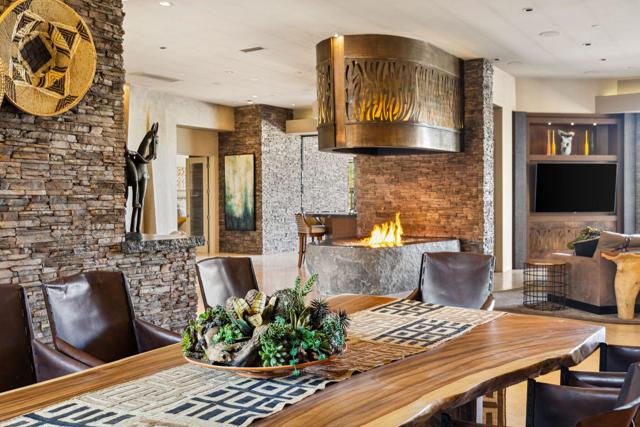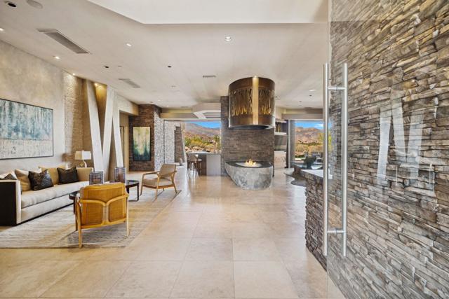 Welcome to 50741 Desert Arroyo Trail, a luxurious custom estate on a premium lot overlooking the 13th fairway of The Reserve Club in Indian Wells. Built by acclaimed Foxx Construction with design by Angela Wells, this 6,135 sq ft single-level home offers the ultimate in desert elegance, privacy, and seamless indoor-outdoor living.Featuring five spacious en-suite bedrooms and five and a half bathrooms, the open floor plan is ideal for both relaxed living and grand entertaining. A dramatic boulder-carved fireplace anchors the great room, where floor-to-ceiling glass doors reveal breathtaking mountain and golf course views. The chef's kitchen boasts a large granite island, high-end wolf appliances, sub-zero refrigerator and a walk-in pantry.Luxury amenities include a soundproof home theater, temperature-controlled wine room, and wet bar, perfect for hosting. The primary suite is a private retreat with natural stone soaking tub, dual vanities, and a private outdoor shower.Step outside to a spectacular backyard with lap pool, spa, waterfalls, pop-up TV, fire pits, misting system, built-in BBQ, and patio heaters, every detail curated for resort-style living.Additional features include airconditioned 4 -car garage plus +1 golf cart space, owned platinum package solar, and smart home technology. Offered furnished per seller's inventory.Living in The Reserve offers unmatched privacy and security with 24-hour guard-gated protection, roving patrols, full time concierge, an on-site private post office, and dedicated HOA staff. With fewer than 250 homes, residents enjoy an exclusive, close-knit community enriched by a vibrant social calendar including wine dinners, themed parties, fitness classes, and kids' activities creating a lifestyle where neighbors truly become friends.