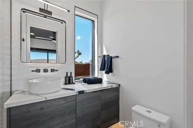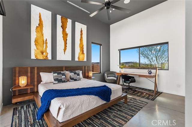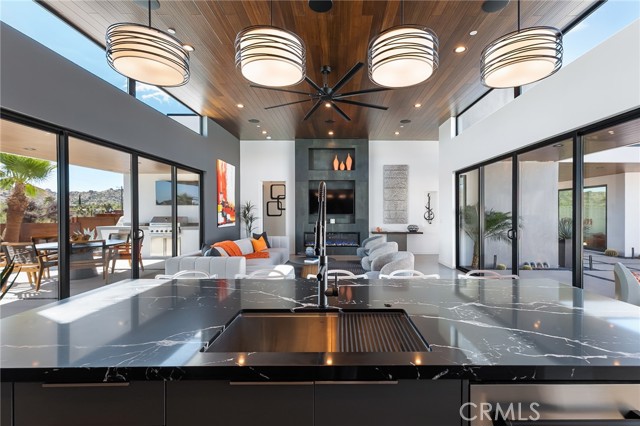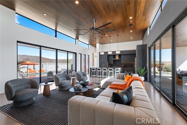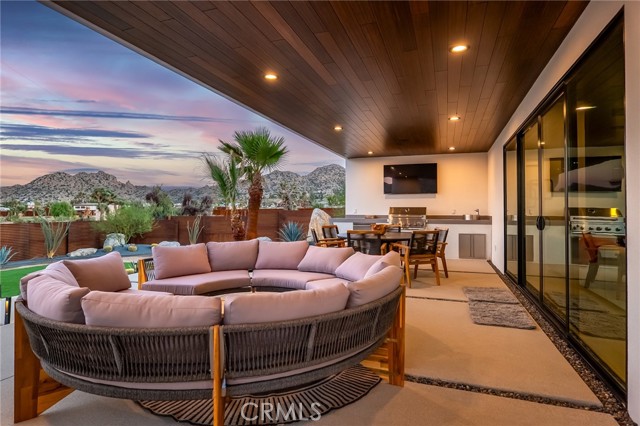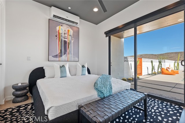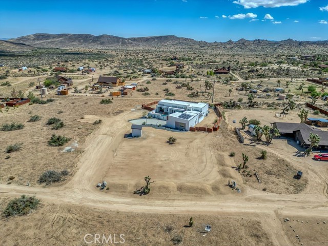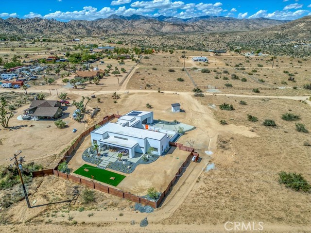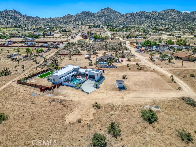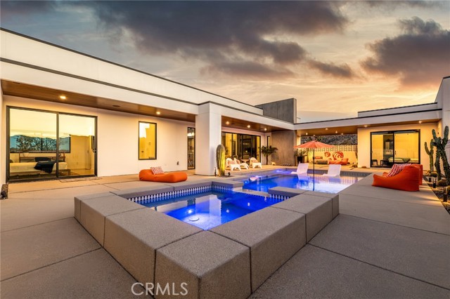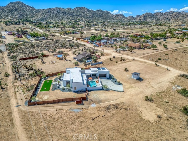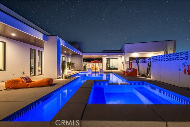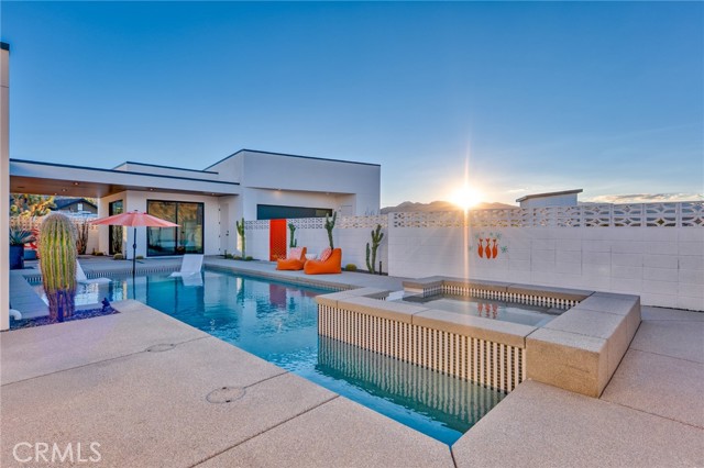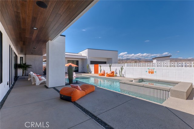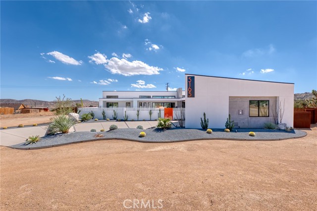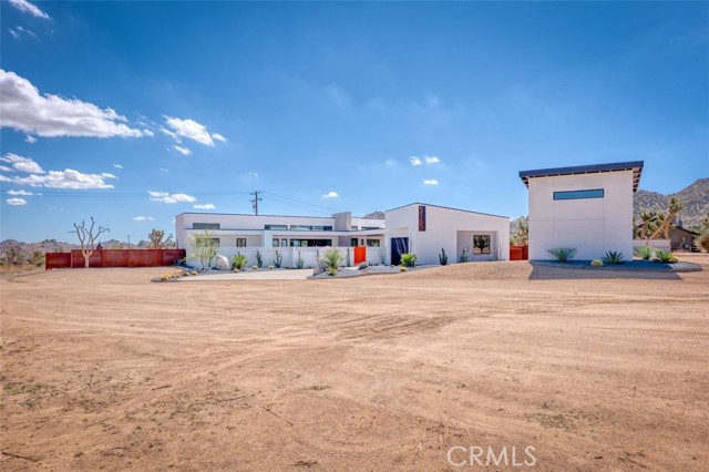 5165 Roy Rogers Road - Modern Desert Masterpiece. In the high desert, silence has texture, and light is its own architecture. At 5165 Roy Rogers Road, design and landscape move in harmony, a balance of modern form and natural stillness. Set on 1.26 acres in one of Pioneertown’s most sought-after settings, this three-bedroom, three-bath residence redefines desert modern living. The bold white-and-black façade, framed by a breeze-block courtyard and signature orange gate, makes an unforgettable first impression, both grounded and sculptural. Inside, expansive glass walls and polished concrete floors invite the desert light to play across every surface. The open-concept great room and designer kitchen merge seamlessly, featuring bespoke cabinetry, waterfall-edge stone counters, and refined mid-century influences that bring warmth to the clean architectural lines. Each bedroom suite offers its own sense of calm and privacy, designed for rest, reflection, and effortless connection to the landscape beyond. The home is offered fully furnished and turn-key, blending curated design with comfort and livability. Outdoors, the private courtyard unfolds around a sleek in-ground pool and spa, framed by native landscaping, sunlit terraces, and a covered outdoor kitchen crafted for year-round enjoyment beneath endless desert skies. Positioned in the heart of Pioneertown, just moments from its iconic gathering spots, Pappy & Harriet’s and the Red Dog Saloon, this residence captures the spirit of modern design framed by desert history. 5165 Roy Rogers Road, where Palm Springs polish meets High Desert soul. A modern architectural statement, ready to be lived in, shared, and remembered.