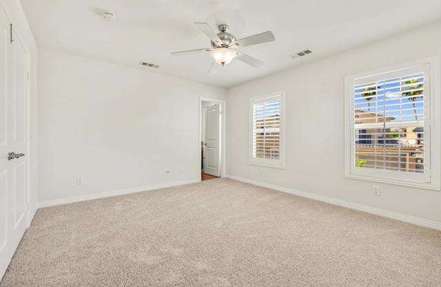 Behind the gates of beautiful Codorniz, this pristine 2-bedroom, 3-bath home showcases the highly desirable Cassia floor plan -- originally selected by the builder as a model for its exceptional design and appeal. Gorgeous mountain views greet you as you enter through the gated front courtyard, creating a warm and inviting first impression. Inside, the dramatic foyer opens to soaring 17+ ft vaulted ceilings, beautiful Spanish tile flooring, new carpet, and a bright, immaculate interior that truly feels like a model home.The stunning great room flows effortlessly to the private back patio, offering the perfect setting for relaxing or entertaining. The inviting kitchen features newer stainless-steel appliances including a refrigerator, dishwasher, stove/oven and microwave.Upstairs you'll find two spacious primary suites, providing ideal privacy for guests or family, along with a large open office or flex space. Additional features include a private laundry closet with stackable washer and dryer and direct access to a two-car garage with finished flooring and custom cabinetry.Residents of Codorniz enjoy low HOA dues and resort-style amenities, including beautifully maintained grounds, roof and exterior maintenance, cable and internet, tennis courts, fitness center, and a large community pool and spa located just across the street. Ideally located just minutes from Old Town La Quinta, where you'll enjoy charming restaurants, boutique shopping, golf courses, and world-famous music festivals.A truly exceptional home in one of La Quinta's most desirable gated communities. Schedule your private showing today.