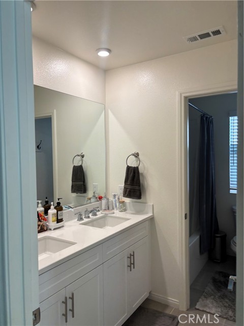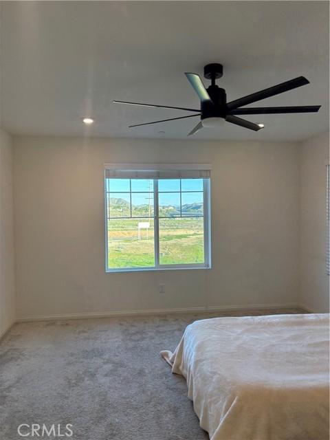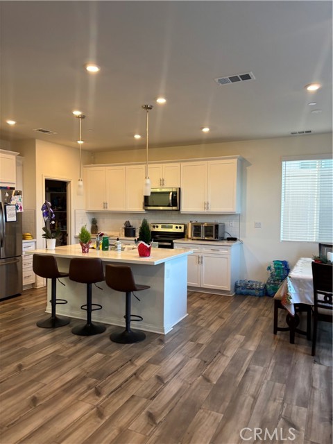 Four-bedroom, three-bathroom single-family residence in Lake Elsinore, built in 2022, offering approximately 2,004 square feet of living space. The two-story floor plan includes a downstairs bedroom and full bathroom. The main level features an open layout connecting the living, dining, and kitchen areas. Interior features include contemporary finishes, a functional kitchen design, and ample natural light. The property includes solar panels, an attached two-car garage equipped with an electric vehicle charging outlet, and an indoor laundry room with washer and dryer. The property is located near major roadways, retail centers, dining options, and local amenities.