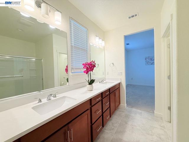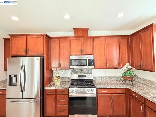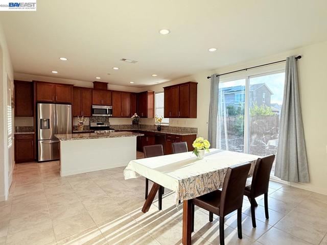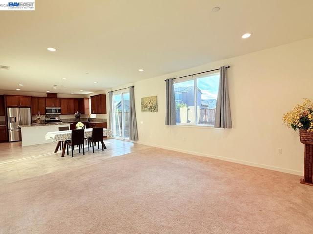 OPEN HOUSE Sat 4/4 from 1PM to 4PM. Beautiful 5-year-old 5-bedroom, 3-bath home in a desirable Antioch neighborhood near the Brentwood border. A beautiful, elegant palm-tree-lined boulevard welcomes you into the community. This bright, like-new home features a spacious family room and dining area and a stylish kitchen with slab granite countertops, a large island, newer stainless steel appliances, and elegant tile flooring. The primary suite offers a large window, a walk-in closet, and a luxurious bath with dual vanities and a glass-enclosed shower. Generous bedrooms with 9-ft ceilings and newer carpet, upgraded bathrooms, recessed lighting, dual-pane windows, central heat/AC, and a large laundry room with a cabinet, and with gas or electric hookups for dryer. Interior features partial fresh paint throughout, with newly painted garage walls and ceiling for a clean, refreshed look. Beautiful landscaping in the big front yard. Large backyard with low-maintenance landscaping. Wide side yards. Walk to a huge community park. Minutes to eBART, freeway access, Costco, Walmart, big shopping plazas, and business parks—ideal for Bay Area commuters. Don’t miss this move-in-ready gem!