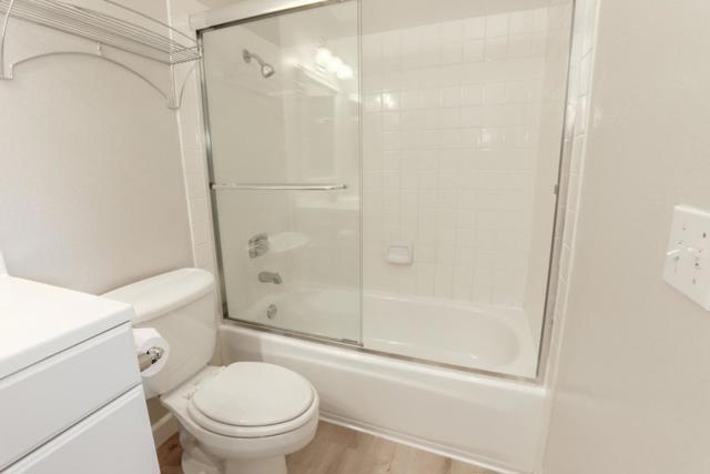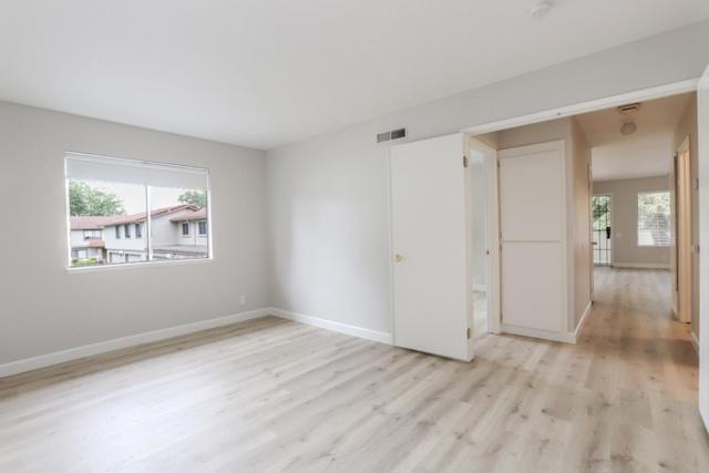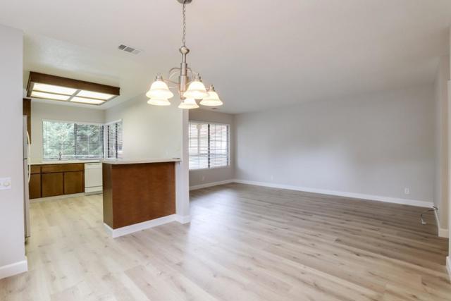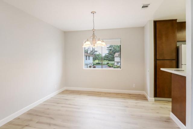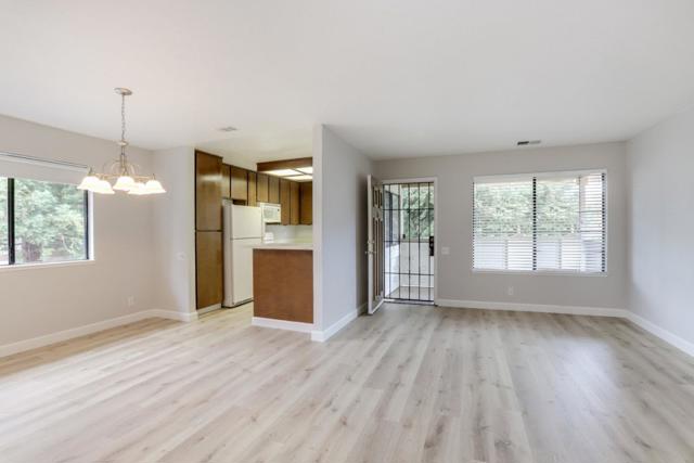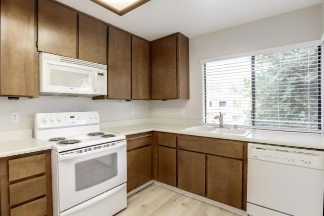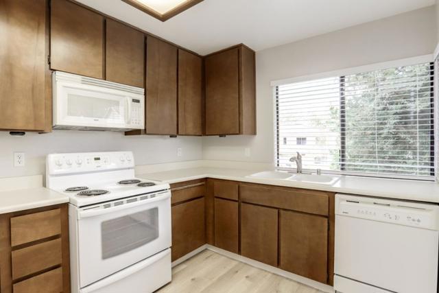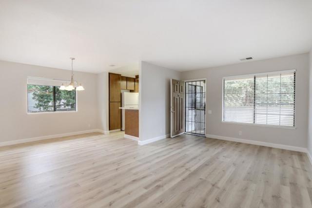 Rare end unit with attached two car garage beauty for the money! New luxury vinyl plank flooring, textured ceiling and paint makes this unit move in ready. Clean kitchen includes breakfast bar, refrigerator, built in microwave oven over stove and view of green belt. Separate utility room big enough for full size washer & dryer. One bedroom with walk in closet. Forced air heating and central A/C. Quite middle of the complex location is across the street from the expansive Martial Cottle Park, full of walking paths and things to explore. Everyday shopping, Highway 87, light rail station and Oakridge Mall are all just a short drive away.