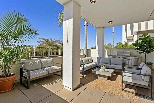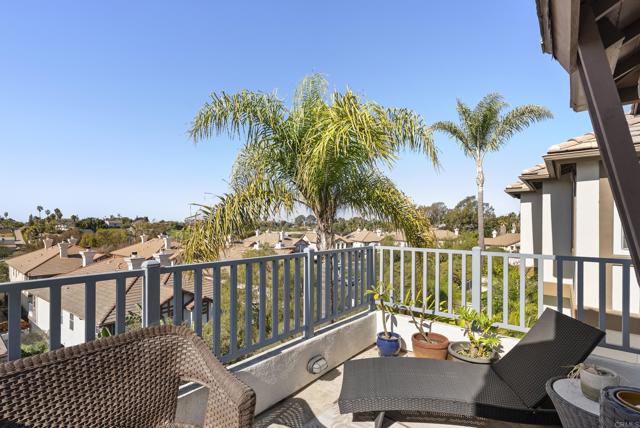 Prime Encinitas location in the desirable Saxony community! This elevated end-unit townhome offers 3 bedrooms, 3 bathrooms, and an attached 2-car garage. Ideally situated next to the YMCA and across from Coastal Roots Farm, just minutes to Moonlight Beach, downtown Encinitas, and the Coaster for convenient commuting. The open-concept floor plan features a spacious living room with a cozy fireplace, flowing seamlessly into the dining area and remodeled kitchen. Beautiful wood-look tile flooring runs throughout the main living areas, ideal for coastal living and sandy toes. The kitchen is thoughtfully updated with quartz countertops, stainless steel appliances, abundant cabinetry, and a gas range, and opens directly to the west-facing rear yard, creating effortless indoor-outdoor living and the perfect setting for sunset BBQs. All bedrooms are situated upstairs, highlighted by the primary ensuite with vaulted ceilings, dual sinks, and a sliding glass door leading to a private balcony with ocean views. Enjoy resort-style amenities including a community pool and spa — all in a prime coastal location close to beaches, shopping, dining, and transportation.