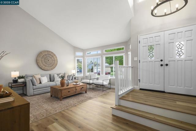 Welcome to this stunning 4-bedroom, 2.5-bath home nestled in the highly desirable Pine Hollow Estates—where elegance, comfort, & location come together seamlessly. Step inside to a bright and airy living room featuring soaring vaulted ceilings, abundant natural light, and beautifully updated flooring that flows throughout the main level. The spacious floor plan offers both formal and casual living spaces, ideal for entertaining or relaxing with family. Upstairs, you’ll find four well-appointed bedrooms designed for comfort and privacy. The primary suite offers a peaceful retreat, complete with an ensuite bath & ample closet space. Outside, mature redwood trees create a serene & private backyard oasis—perfect for outdoor dining or simply unwinding under the canopy of nature. Situated near the Clayton border at the base of picturesque Mt. Diablo, this home provides the tranquility of suburban living with convenient access to Walnut Creek, shopping, dining, & outdoor recreation. Desirable schools are nearby, including Clayton Valley Charter & Northgate option (buyer to verify). Don’t miss your chance to own a beautifully maintained home in one of the area’s most coveted neighborhoods—where every detail reflects pride of ownership & the lifestyle you’ve been searching for w/ NO HOA!