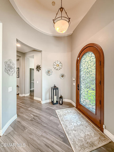 Welcome to a private single-story oasis in the prestigious gated Palermo community of Dos Vientos Ranch.This stunning 4 bedroom plus office, single-story residence blends elegance, comfort & resort-style living in harmony as one of the few homes in the area that offers the total package of, a relaxing courtyard, sparkling pool, spacious casita and a sought after single-story living experience, with only 1 direct neighbor.Featuring just under 4000 square feet of thoughtfully designed living space - including a spacious casita that offers a warm and cozy fireplace & makes a great seating area while also large enough to accommodate a king size bed. and allows plenty of room for 65-inch TV. This amazing casita offers the ultimate in flexibility & may be used as a private home office, guest quarters, in-laws home, nanny's quarters, or fitness area or play room.From the moment you arrive, this home showcases exceptional quality, featuring a beautiful stone front accented doorway and a luxury crafted iron door, setting the tone for refined accents throughout the home. Upon entry to this home you'll be captivated by the beautiful interior, featuring high ceilings, large picture windows, and current office or what may be your living room or multi-purpose room directly off entry. Offering an inviting open flow between living spaces in the spacious family room with surround sound multi zone speakers and luxury kitchen, with cozy fireplace for all to enjoy in both rooms. At the heart of the home lies a chef's dream kitchen, with beautiful large island adding extra storage space as well as prep area. This amazing space showcases wonderful Dacor stainless steel cook top, double oven and microwave, Miele dishwasher and built-in coffee maker, stainless steel built-in refrigerator, and SubZero luxury wine fridge. Elegant contemporary quartz countertops, a walk-in pantry, and a convenient filtered pot filler behind the stove elevate both function and style -- making this kitchen as beautiful as it is practical.One of the most amazing features of this home is the wonderful central courtyard, around which the entire home is gracefully designed. Custom Wood gates allow guests to enter this serene space, perfect for lounging, relaxing, or entertaining, complete with a fireplace and fountain that create a touch of ambiance and sophistication with multi-zone outdoor speakers.The primary suite offers a private retreat with a spa-inspired jacuzzi over size sunken bath, upgraded tile, dual sinks, vanity, upgraded TOTO toilet with bidet, and direct access to the serene and private backyard.Secondary bedrooms are spacious and thoughtfully appointed and secondary baths also feature upgraded Toto toilets and neutral upgraded tile.The additional spacious office provides the ideal setting for working from home or creative pursuits.The private casita includes its own kitchenette with updated quartz countertops, full bathroom with beautiful quartz counters and upgraded TOTO toilet, and a warm and cozy fireplace, ideal for guests, extended family, or a quiet studio space.Step outdoors and enjoy your entertainer's paradise featuring a sparkling pool and spa, built-in barbecue area, and lush landscaping, covered patio and the perfect hillside backdrop for California's indoor-outdoor lifestyle Additional highlights include a 3 car tandem garage with custom New Age lockable aluminum steel cabinetry, decorative hard tile garage floor designed to showcase your garage and cars that occupy it. Don't miss extra long driveway to accommodate many side by side vehicles while entertaining.Convenient laundry room off garage entry with deep sink & washer/dryer.Serene gated privacy, sought-after location near shopping, dining, hiking, biking trails & nearby scenic parks and walkable to dog park/open space.This home truly captures the essence of luxury California living -sophisticated, light-filled, & designed for connection, comfort, & style.