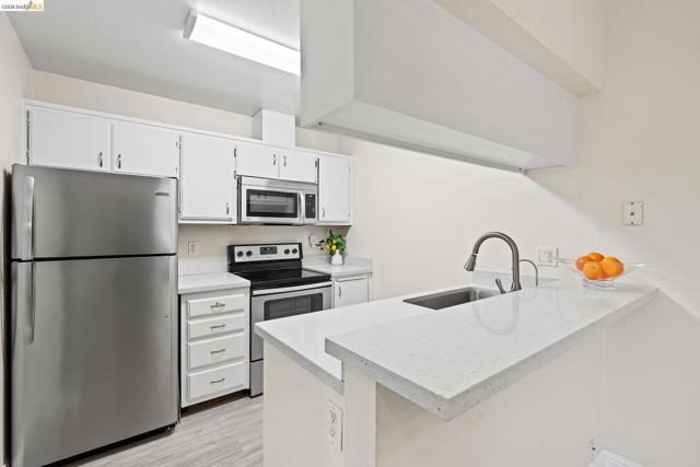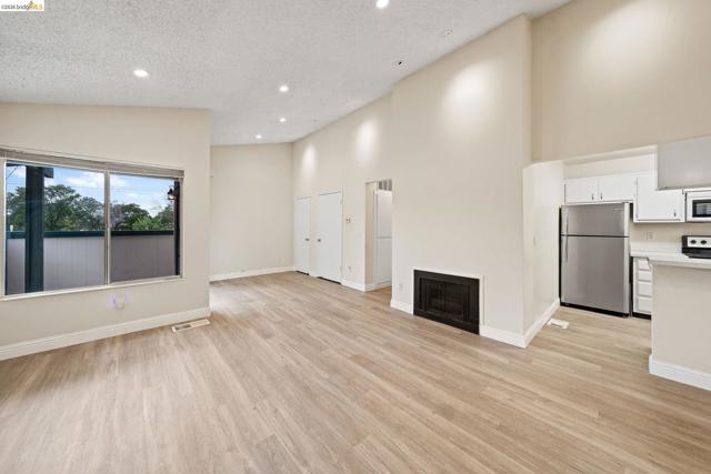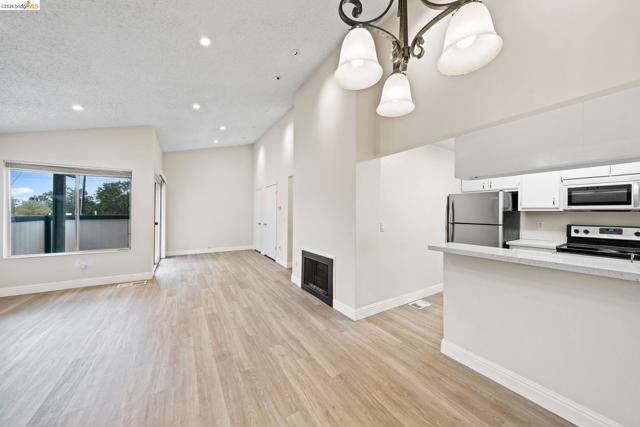 Welcome to 5425 Concord Blvd. #A4, a well-maintained, ground-level 1-bedroom, 1-bathroom condo offering 762 square feet of comfortable living in Concord. Laminate flooring extends throughout, providing a clean, modern look. The kitchen is appointed with stainless steel appliances, updated countertops, and a convenient breakfast bar, opening to a dining area that allows for additional seating. The living room features a gas fireplace, vaulted ceilings, and abundant natural light, creating an inviting setting for everyday living. The spacious bedroom includes a private vanity and a large walk-in closet, offering ample storage and functionality. A private back patio extends the living space outdoors, ideal for morning coffee or evening relaxation. Mature trees surround the community, enhancing the setting. Located just minutes from downtown Clayton, walking trails, shops, schools, and parks, this condo combines comfort, convenience, and a desirable Concord location. Property has been virtually staged for your convenience.