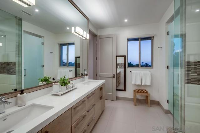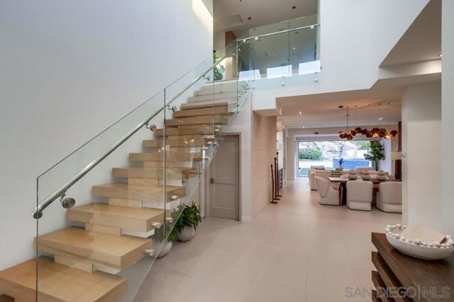 Modern coastal Home, recently remodeled, in LA JOLLA. This stunning 6 bedroom, 6.5 Bathroom home offers an ideal layout with 2 bedrooms on the main level and 4 upstairs. The primary suite features partial ocean views and a fireplace. The spacious floor plan includes a brand new constructed playroom/pool room with its own full bathroom, perfect for entertaining or guest use. Professionally designed, this exquisite home features rare upgrades like; Stone finished walls in foyer and bathroom, Seamless Walnut Texture kitchen cabinets with sandblasted glass doors and white macaubas and dark gray quartzite counter-tops. Stairs are made from steel structure and covered with Oak Wood with stainless steel handrail and tempered glass. Window coverings are dual neolux with motorized roman shades in Master Bedroom. Enjoy the convenience of key-less entry system with Ring doorbell. Take in the sun at the pool, completely renovated. You will truly enjoy touring the decor and openness of this magnificent home, designed for comfort and entertaining, this home blends modern upgrades with coastal charm.