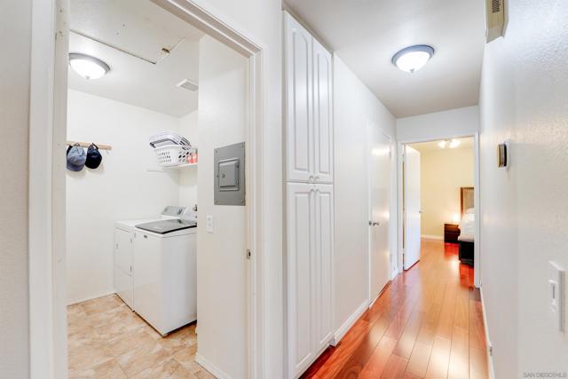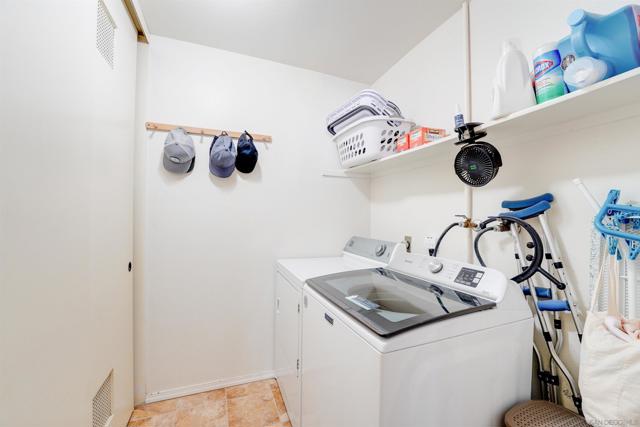 Welcome to this rare one-story corner unit in the highly sought-after Villa Monterey in the Tierrasanta community with no neighbors above or below. Enjoy an attached two-car garage and a large private patio, accessible directly from both the kitchen and the primary bedroom through sliding glass doors—perfect for morning coffee or evening relaxation. Inside, you’ll find a generous open living area with soaring vaulted ceilings, creating an airy and inviting atmosphere. The kitchen is thoughtfully designed with abundant cabinetry, expansive counter space, and a gas range, ideal for home cooks and entertainers alike. A separate laundry room inside the home adds convenience, while thoughtful touches throughout make this residence as functional as it is comfortable.