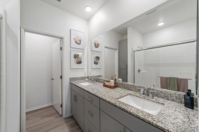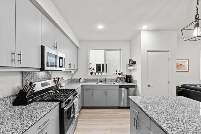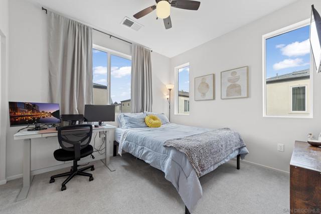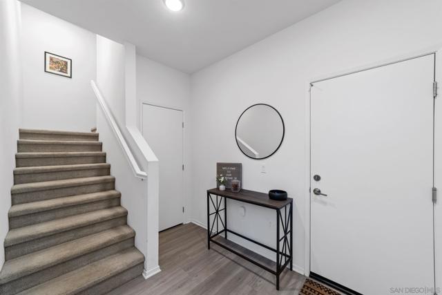 Welcome to 5502 Sandcliff Lane #147, a stunning corner end-unit Solmar Plan 2 model home—one of the last model homes sold in the sought-after Playa del Sol community and VA financing approved! This beautifully upgraded residence features 2 bedrooms, 2.5 baths, and a 2-car garage across approximately 1,310 sq. ft. of thoughtfully designed living space. Step inside to an open-concept main level filled with natural light, highlighted by a sleek modern kitchen with stainless steel appliances, quartz countertops, a large center island, and designer cabinetry. The primary suite includes a spa-like ensuite bath with dual vanities and a generous walk-in closet, while the secondary bedroom offers flexibility for guests, family, or a home office. Enjoy smart-home features including smart switches, smart garage door, and smart water heater for modern convenience. The community boasts resort-style amenities—an impressive clubhouse with a state-of-the-art gym, a heated pool complex with spa and hot tub, and two clubhouses (one for everyday use and another available for private events). Ideally located near shopping, dining, entertainment, and top-rated schools, with easy access to the 805 and 905 freeways, this home offers the best of modern South San Diego living—stylish, smart, and community-focused.