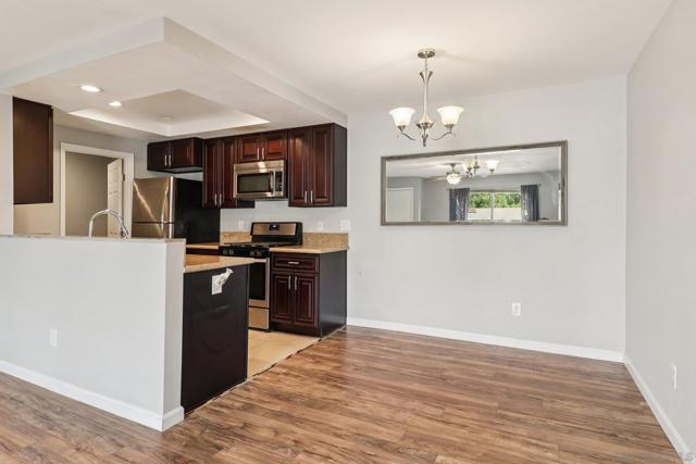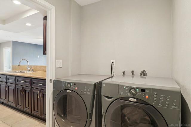 Very large & gorgeous updated 2BR/2BA condo with spacious open floor plan. End unit provides security and privacy. Beautiful kitchen features granite counters, cherry-finish cabinets, stainless steel appliances, recessed lighting & tile floors. Large primary suite w/ private bath + walk-in closet; 2nd bedroom also offers a walk-in closet. Light & bright interior with sizable hall bath. Full-size washer/dryer in a private laundry room—no shared laundry! Includes 1-car garage and assigned space. Move-in ready. VA approved.