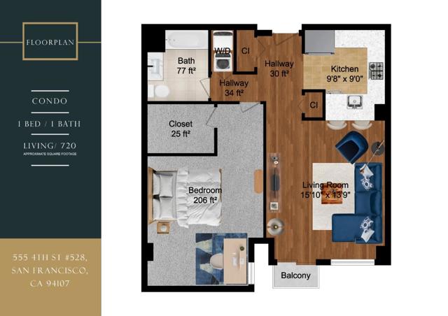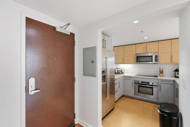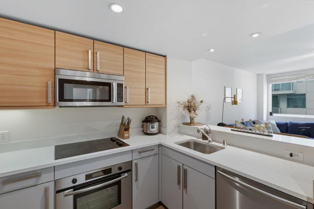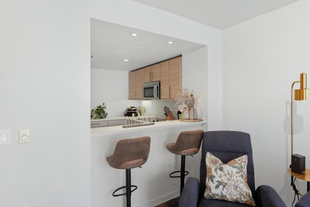 Welcome to 555 4th St, Unit 528 at The Palms, where modern elegance meets urban convenience in the heart of South Beach. This beautiful 1-bedroom, 1-bath condominium offers 720 sq. ft. of sun-filled living space with a tranquil courtyard outlook. The open floor plan creates a natural flow throughout the home, featuring a contemporary kitchen with quartz countertops and sleek stainless appliances, seamlessly connected to the dining and living areas. The spacious bedroom includes a walk-in closet with built-in organizers to maximize storage. A modern-style bathroom with clean finishes and convenient in-unit laundry further enhance the functionality of the home. Unit 528 also comes with an owned parking space, rare features that provide practical value in city living. The Palms is a full-service building offering a 24/7 lobby concierge, fitness center, business center, social lounge, 20-seat theater, and a courtyard lined with palm trees. Perfectly situated in South Beach, it is steps from Caltrain, Muni, the new T-line, Oracle Park, Chase Center, the Ferry Building, and the farmers market, with easy access to Silicon Valley and the East Bay. Combining location, comfort, and community, 555 4th St, Unit 528 delivers the best of modern city living.